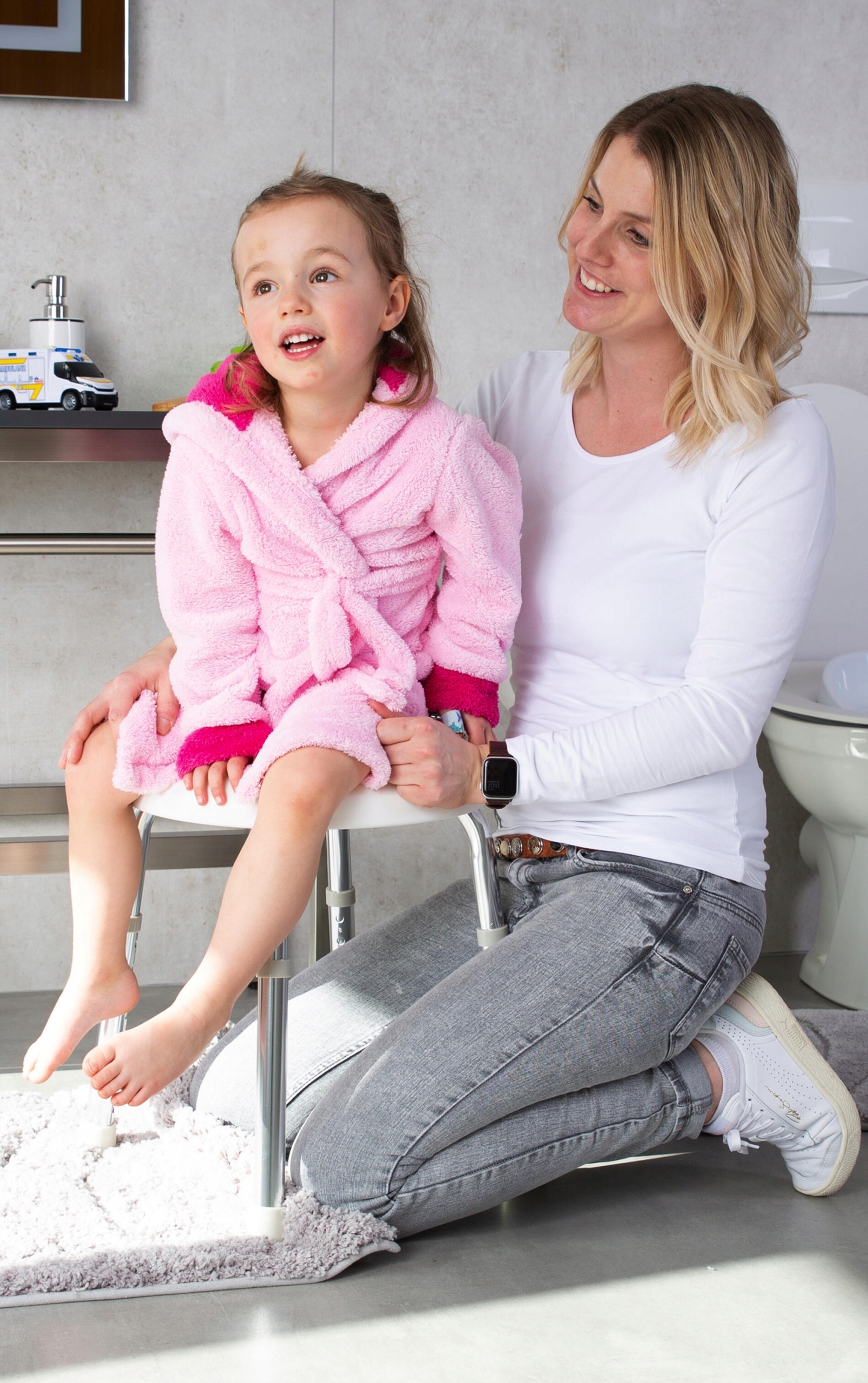 - Стілець для ванної кімнати завдяки своєму великому сидінню з пластику, який легко миється, і великим ніжкам забезпечує комфорт і максимальну стійкість - навіть на вологій підлозі,