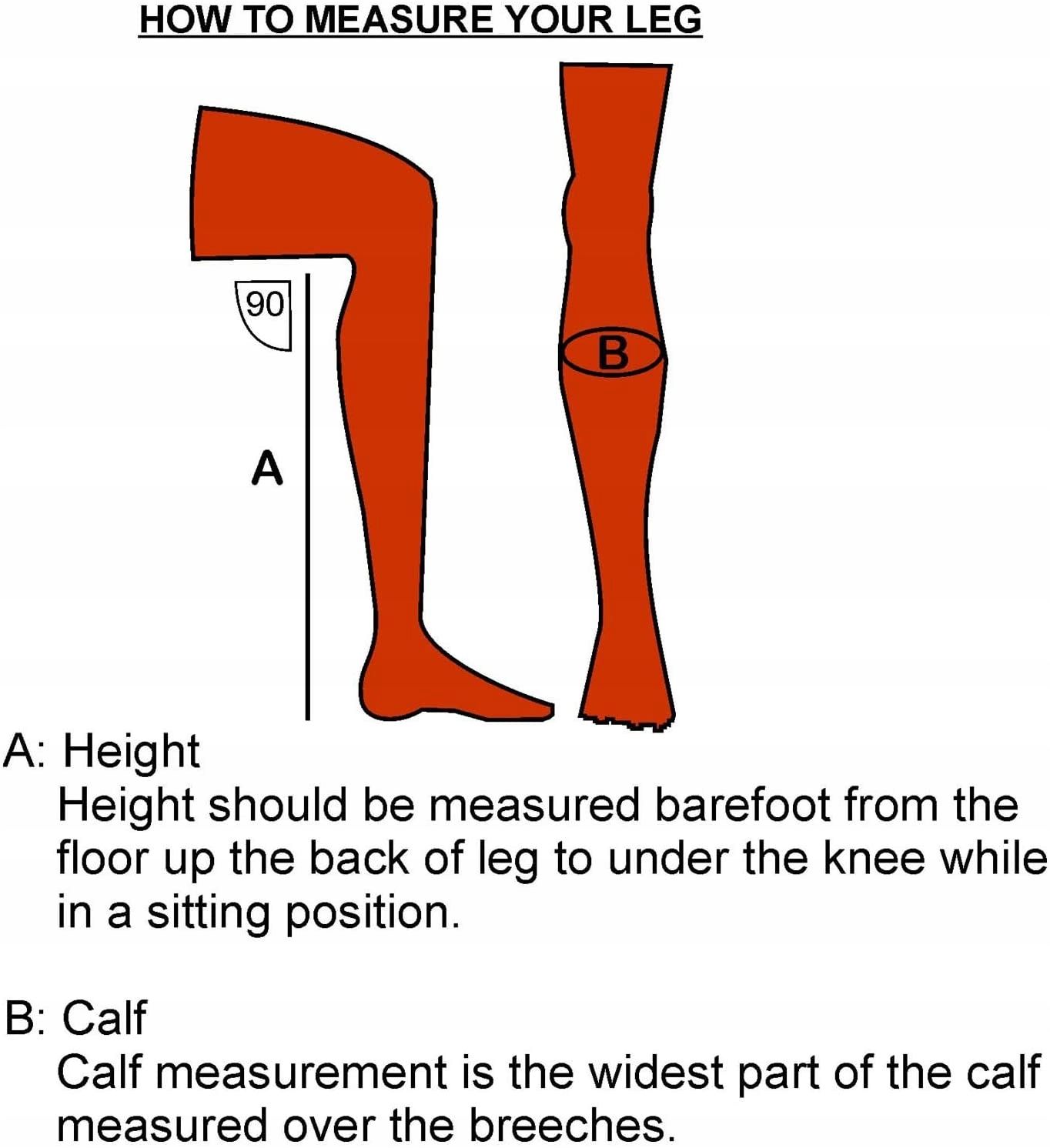 ШИРИНА (B): Щоб правильно виміряти висоту литок, виміряйте її від підлоги до згину під коліном.