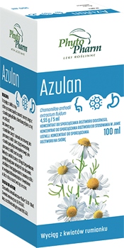Азулан — традиційний лікарський засіб рослинного походження у вигляді рідини, призначений для зовнішнього і внутрішнього застосування. Діюча речовина препарату – спиртовий екстракт квіток ромашки аптечної (Chamomillae anthodii extractum fluidum) (0,5:1).