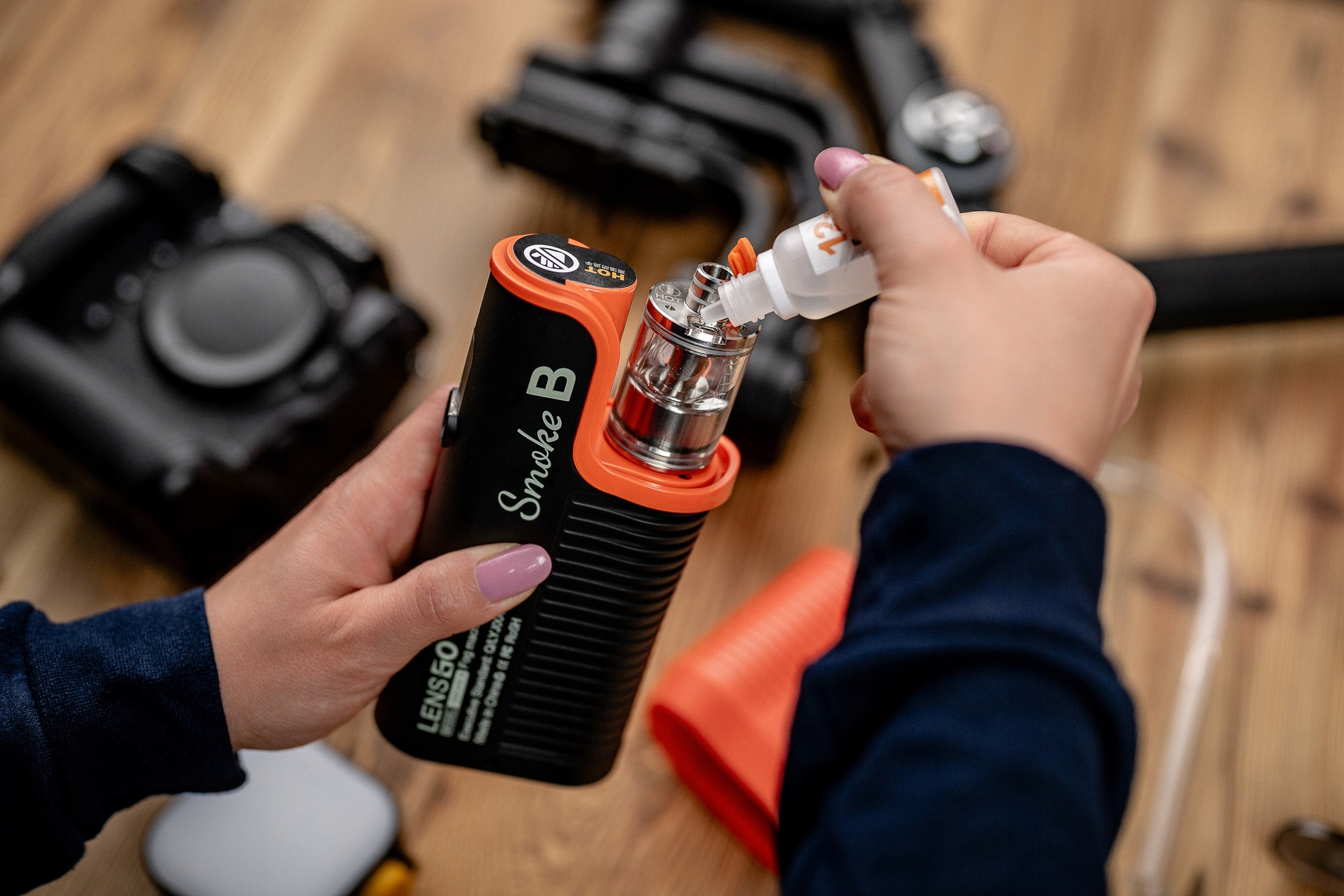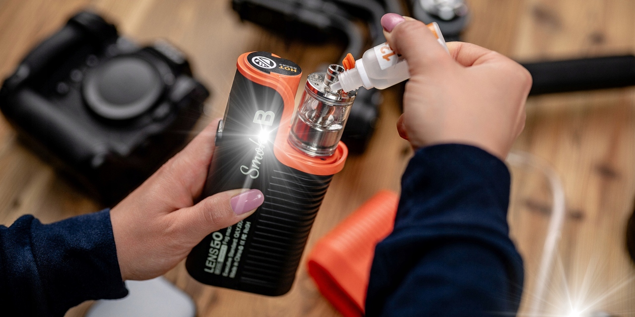 Відповідні пропорції речовини гарантують найкращу щільність диму та неперевершену продуктивність. Заповнення танка просте і швидке. Просто вийміть силіконову пробку, яка кріпиться до атомайзера, а потім, використовуючи точний дозатор, додайте невелику кількість рідини до зазначеного рівня.