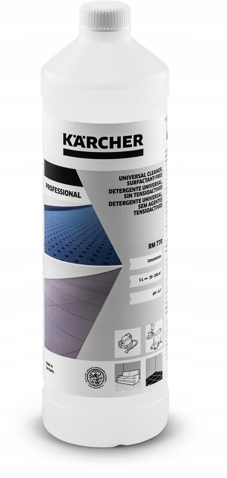 Сильний засіб для чищення Kärcher RM 770 допомагає мити сильно забруднені текстильні підлоги, оббивку та тверді поверхні. Цей засіб легко розчинить плями масла, жиру чи нікотину.