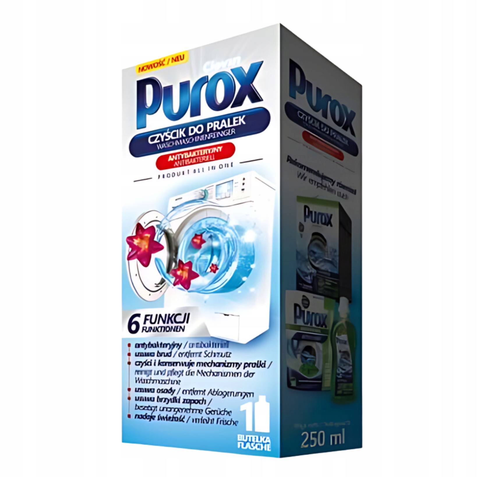 Рідина для чищення пральних машин Purox — ідеальне рішення, яке підтримуватиме вашу пральну машину чистою та гігієнічною. Завдяки ретельно розробленій формулі ефективно усуває важко видаляються забруднення, зберігаючи як м'які, так і жорсткі елементи пристрою. Вам більше не потрібно хвилюватися про накип, бруд або відкладення - засіб для чищення Purox впорається з будь-якою проблемою.