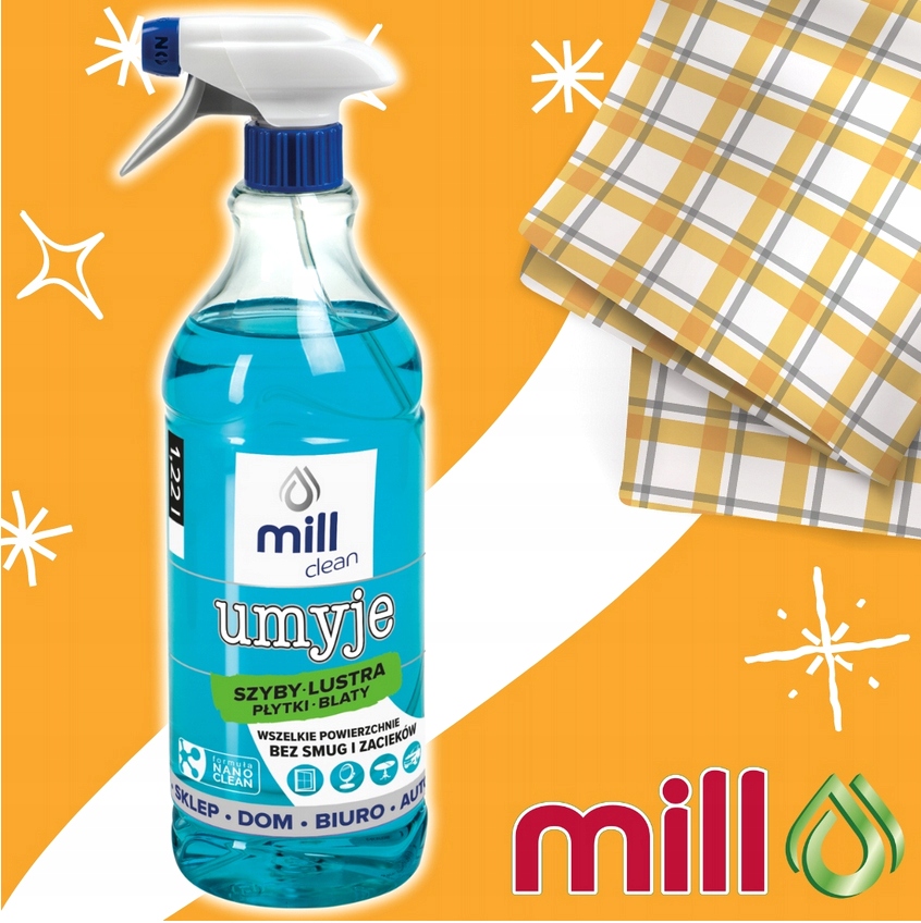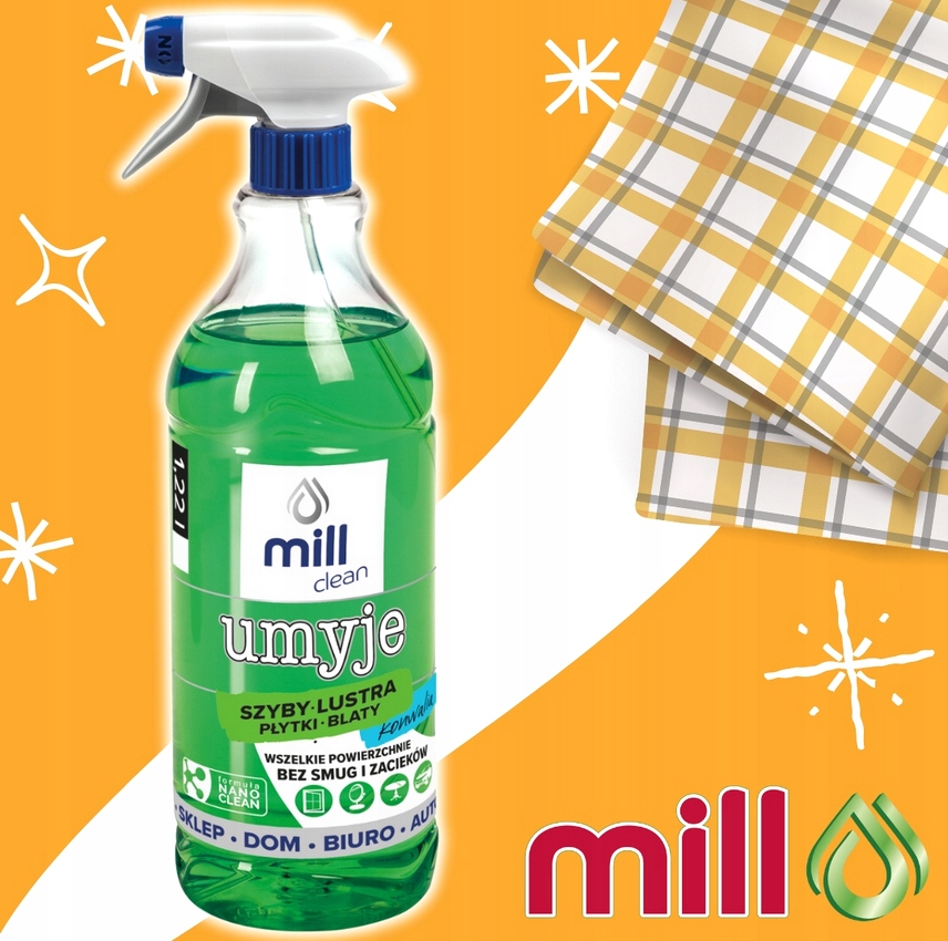 ✅ Mill clean БУДЕ не тільки ефективно та якісно, без розводів та смуги, очистить гладкі скляні панелі, стільниці, дзеркальні поверхні, але, перш за все, надасть очищеним поверхням кристалічного блиску.