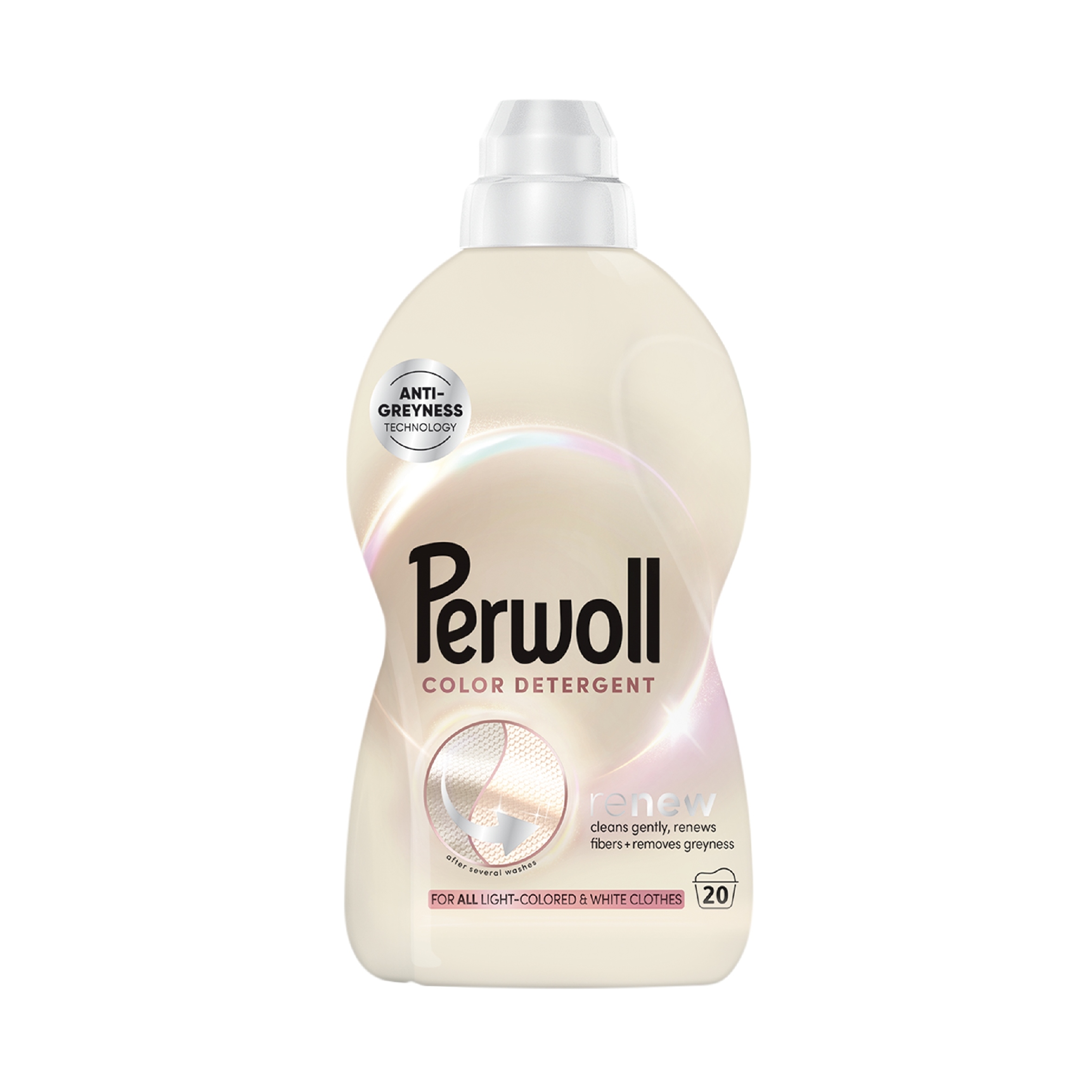 Рідина для прання Perwoll Light Color 1 л Perwoll Renew Color Detergent – рідина для прання світлих і білих тканин, яка запобігає посивінню одягу. Відкрийте для себе Perwoll Light для прання світлих і білих тканин з інноваційною технологією проти посивіння та технологією потрійного оновлення - ідеальний догляд за всіма бежевими, пастельними, світлими та білими речами!
