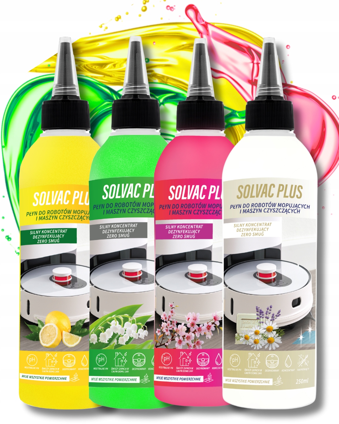 4х250 мл концентрату для роботів мопінгу та автономних пилососних очищувачів у упаковці з дозатором.