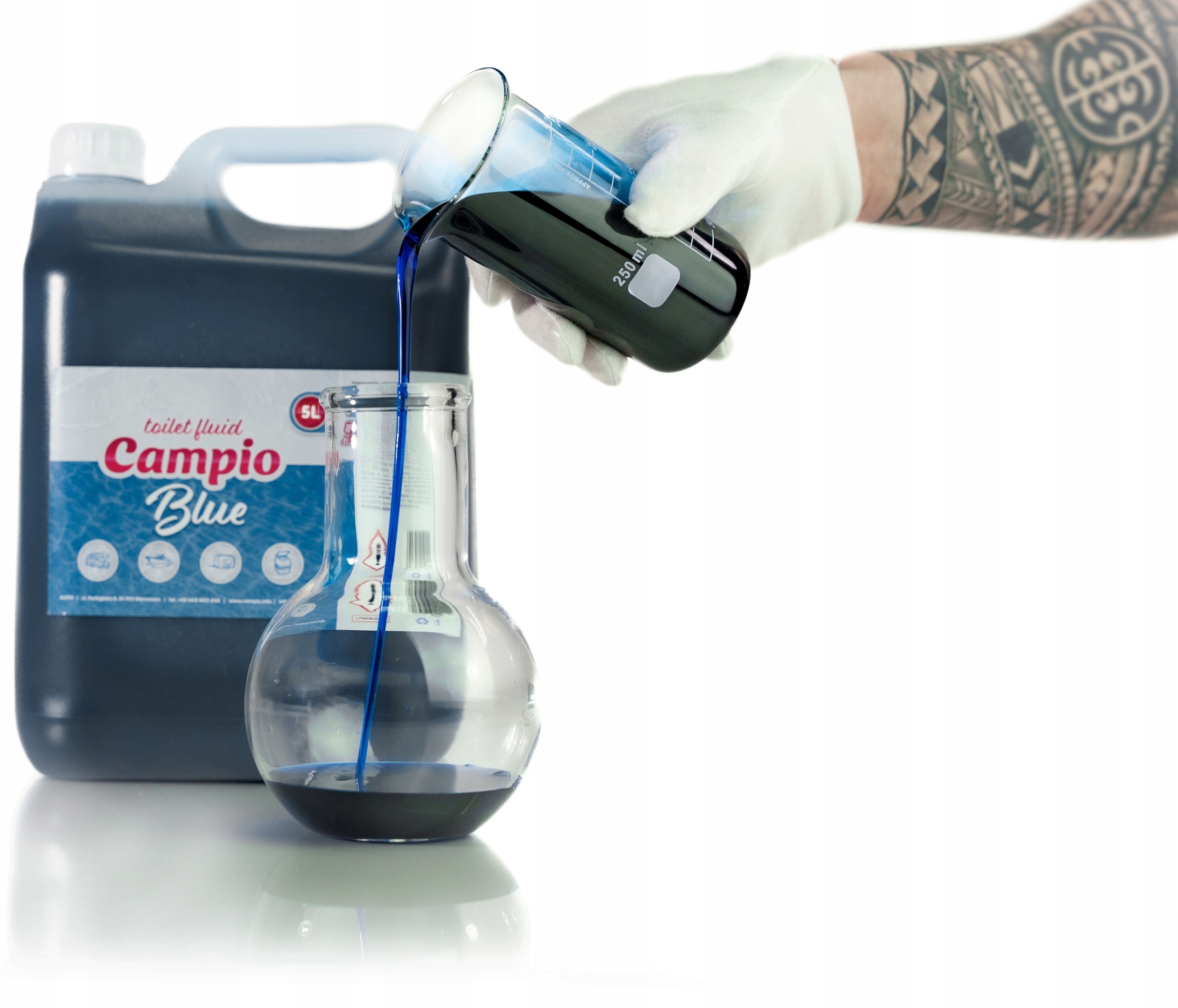 CAMNPIO BLUE - рідина для туристичних туалетів з запахом моря, для використання в нижньому зливному баку. Препарат сприяє розкладанню фекалій і туалетного паперу, запобігає накопиченню газів і полегшує спорожнення бака. Ефективно усуває неприємні запахи, а спеціально підібраний склад створює враження свіжості та чистоти.