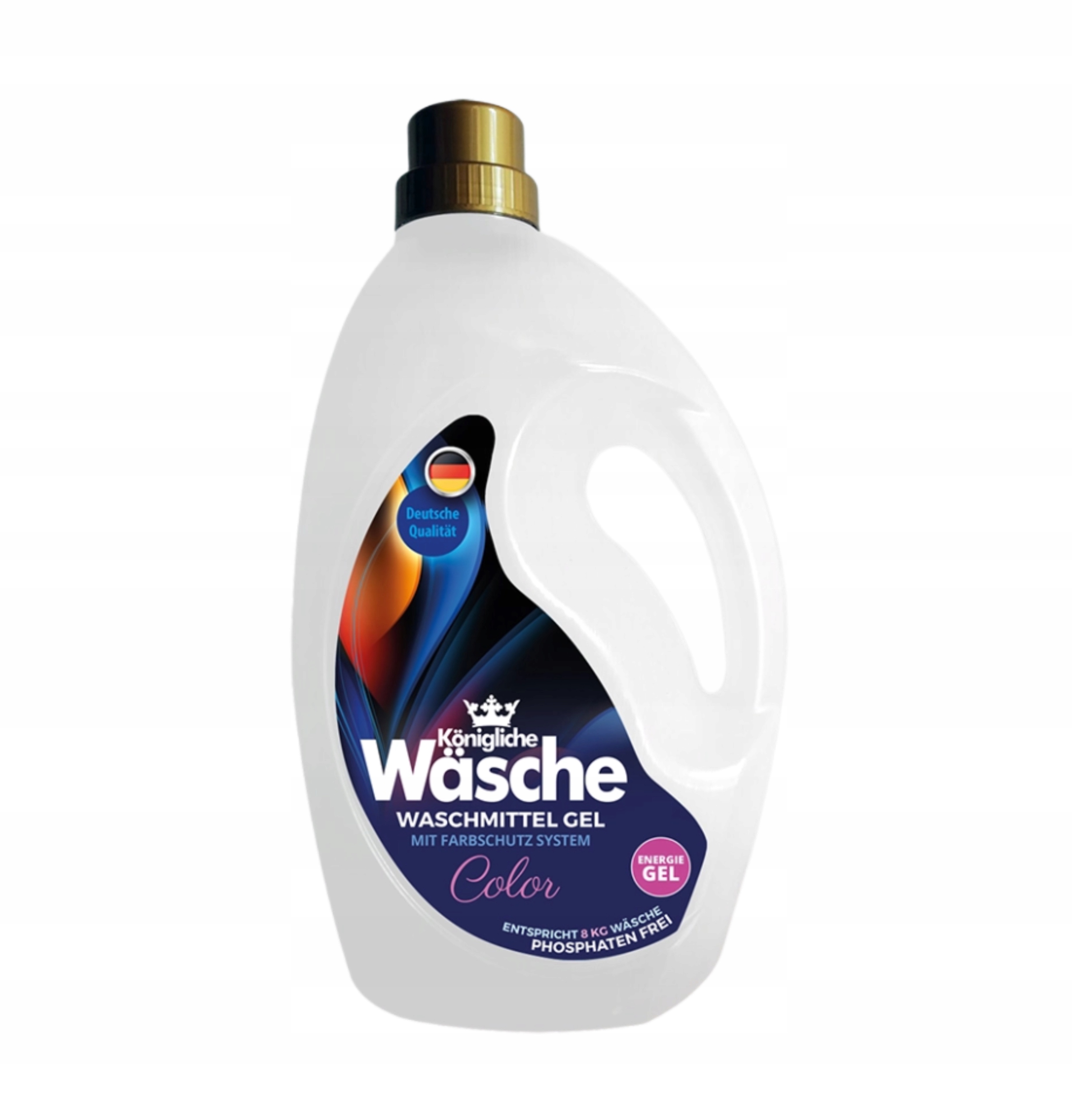 Пральна рідина Königliche Wäsche COLOR має вдосконалену формулу, яка ефективно видаляє плями та забруднення, водночас захищаючи кольори тканини від вицвітання. Він діє м’яко, не пошкоджуючи волокна та перешкоджаючи передачі кольорів між тканинами.