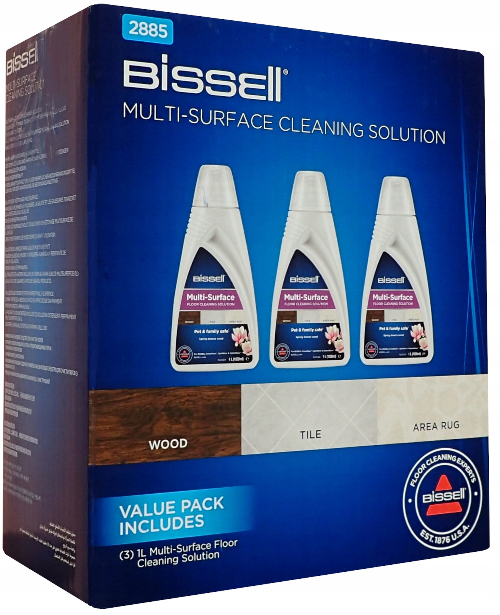 Bissell 2885 -це набір з 3 рідин мультипірні багатоповерхівки потужністю 1 л (загалом 3 літри). 4 Діти та домашні тварини (якщо вони використовуються за призначенням), не містять важких металів, фосфатів або барвників.