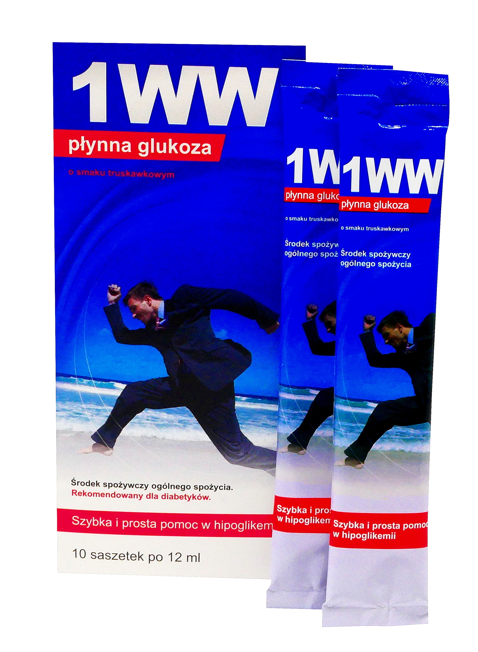 Якщо рівень цукру в крові знижується, вам слід якнайшвидше прийняти 10-20 г швидкодіючих вуглеводів, тобто вуглеводів з високим глікемічним індексом. Найкраще споживати 1-2 пакетики рідкої глюкози 1WW, через 15 хвилин необхідно виміряти рівень цукру в крові та, якщо необхідно, відкрити 1-2 пакетики.