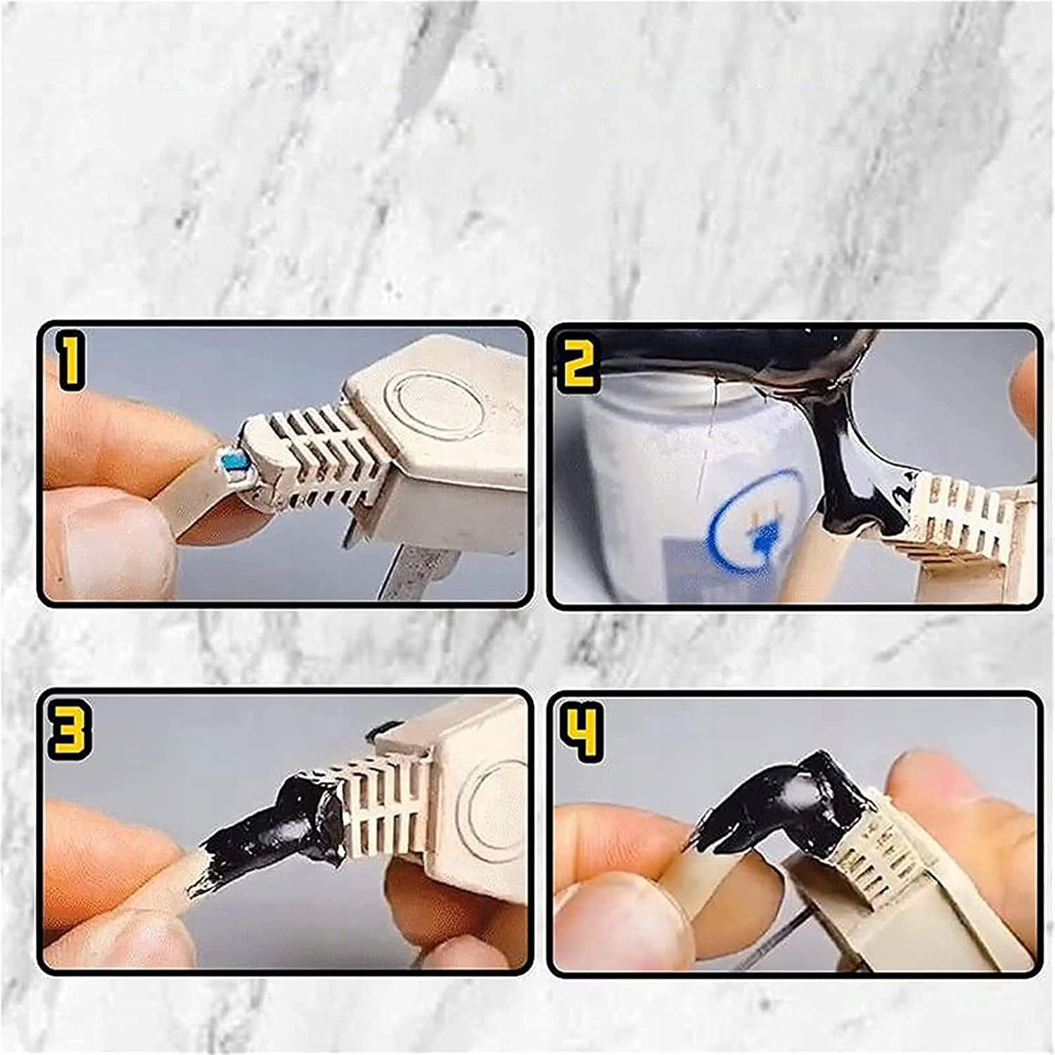 ✔ зберігайте [рідку клейку стрічку для електриків]: Це особливий клей для електричної ізоляції та герметизації, яка є рідкою. Після нанесення кабелю на поверхню він створює ізольований і затверджений шар, який ефективно захищає кабелі від старіння проводів та витоку струму. Крім того, він має властивості, такі як водостійкість та стійкість до високих температур.