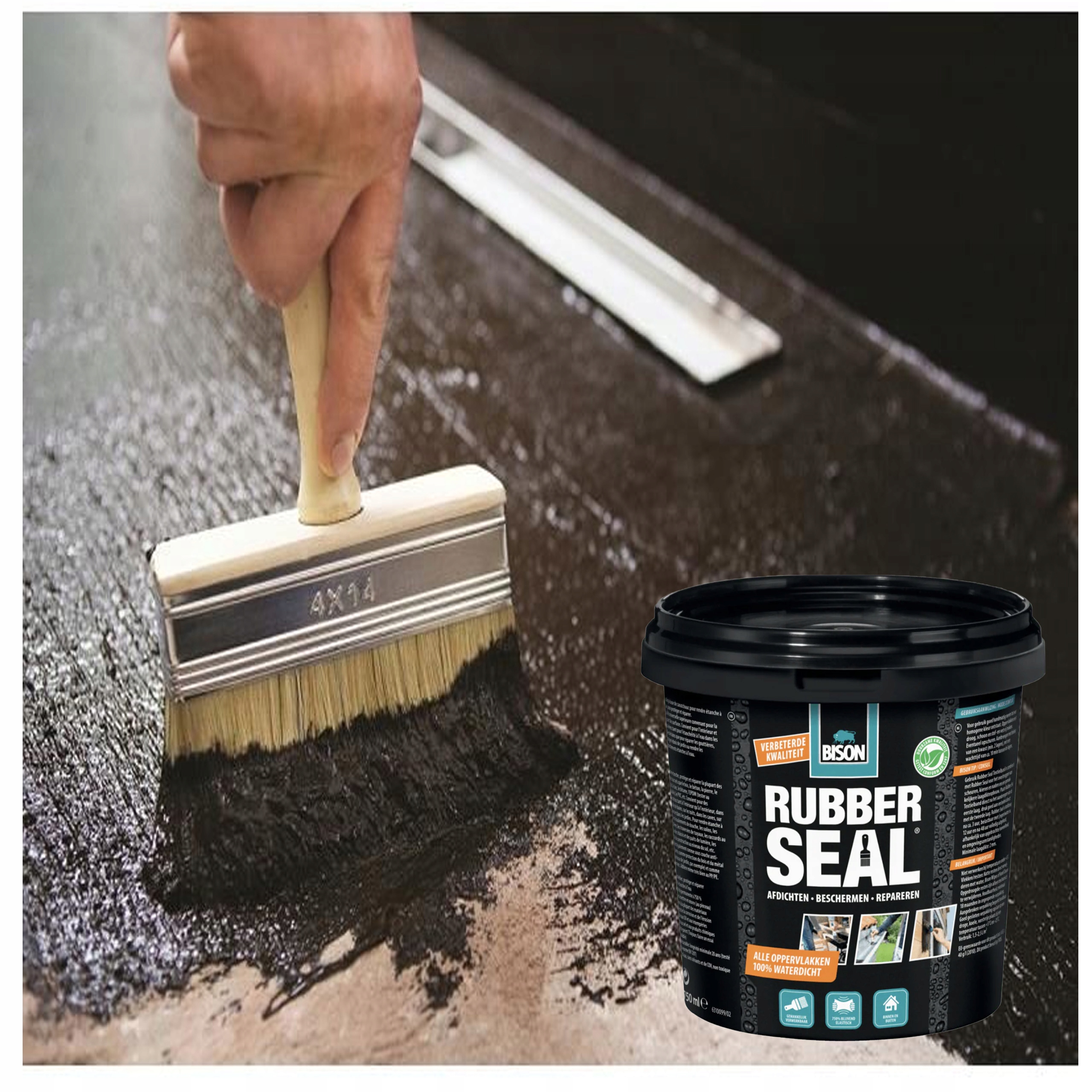 Rubber Seal завжди легко наносити пензликом, він екологічно чистий, на 750% гнучкий і стійкий до погодних умов та УФ-випромінювання. Це означає, що ви можете почати безпечно та швидко як у приміщенні, так і на вулиці.