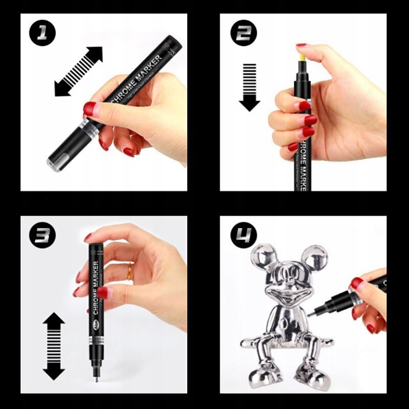 Маркери Liquid Chrome - це унікальний результат тривалої роботи над чорнилом Burner. Унікальне чорнило на спиртовій основі створює дивовижний дзеркальний ефект на гладких невбираючих поверхнях. Маркер з ефектом рідкого хрому ідеально підійде для декорування моделей, макетів, малюнків, етикеток, каліграфії тощо. Ручка стійка до УФ-випромінювання та має високу непрозорість. Після висихання він стійкий до стирання та подряпин.