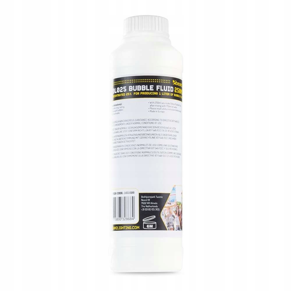BeamZ FBL025 — це рідкий концентрат, який при змішуванні з водою можна використовувати для отримання загалом 1 літра рідини для бульбашок. З цим концентратом у вас немає великої пляшки, що є чудовим рішенням для аніматорів, оскільки він економить місце, легкий, зручний для транспортування. Кінцевий продукт при змішуванні з водою підходить майже для всіх бульбашок. Рідина створює красиві бульбашки для максимального ефекту.