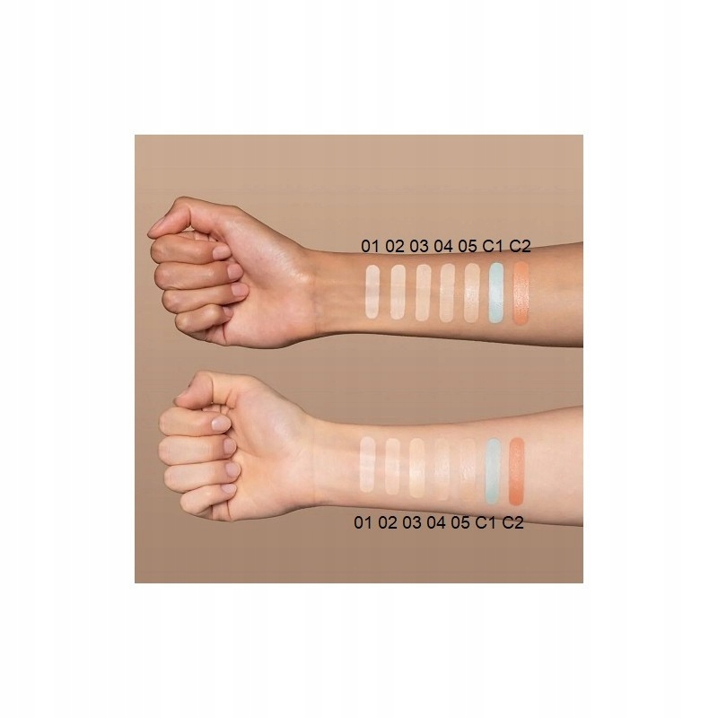 Кольори розроблено для легкої корекції знебарвлення та адаптації до типу шкіри. Ознайомтеся з двома спеціальними відтінками C1 і C2, призначеними для зменшення розширених кровоносних судин, плям і темних кіл під очима