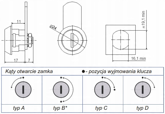 - гарантія безпеки b> (немає пружинного механізму - запобігає відкриттю іншим предметом, окрім спеціального ключа)