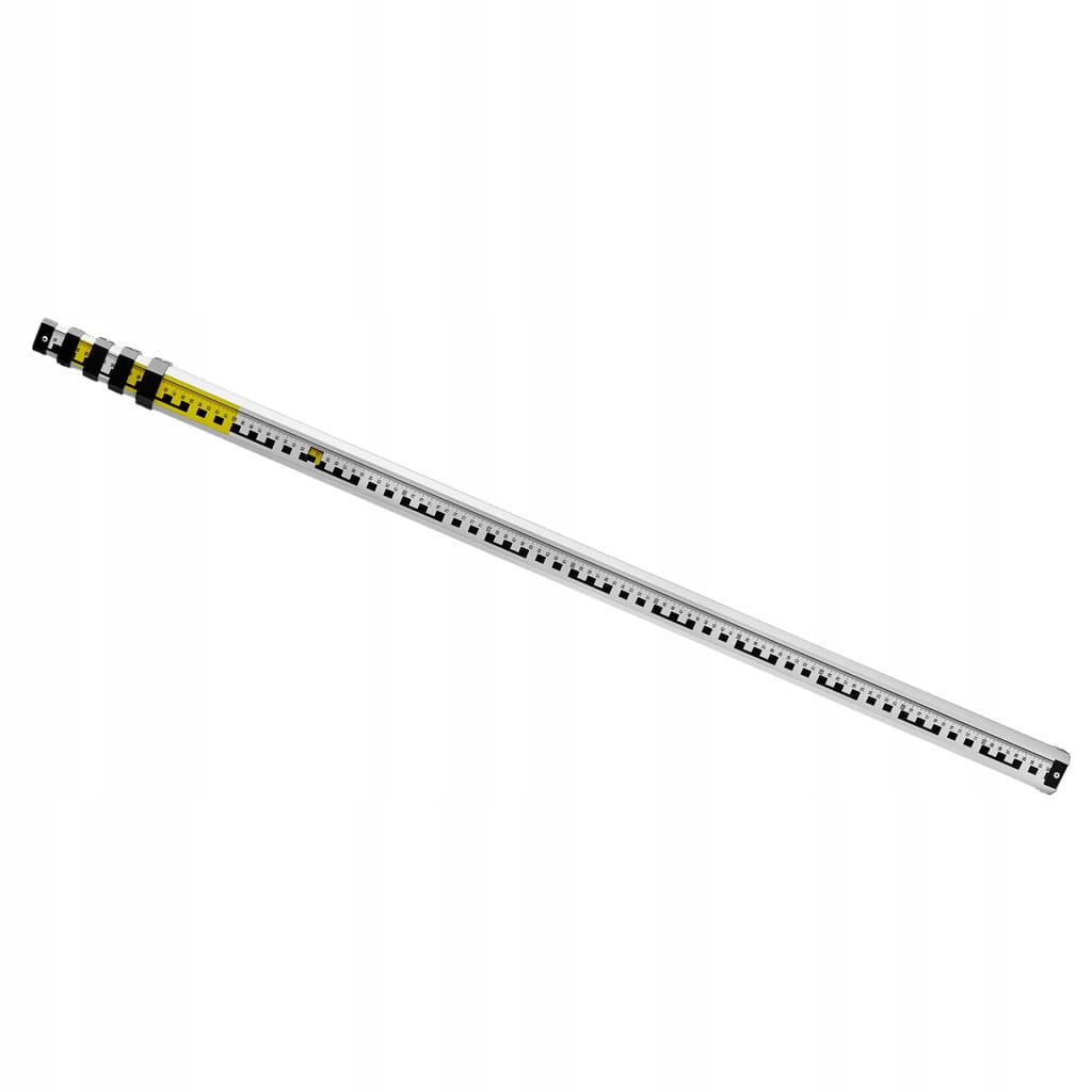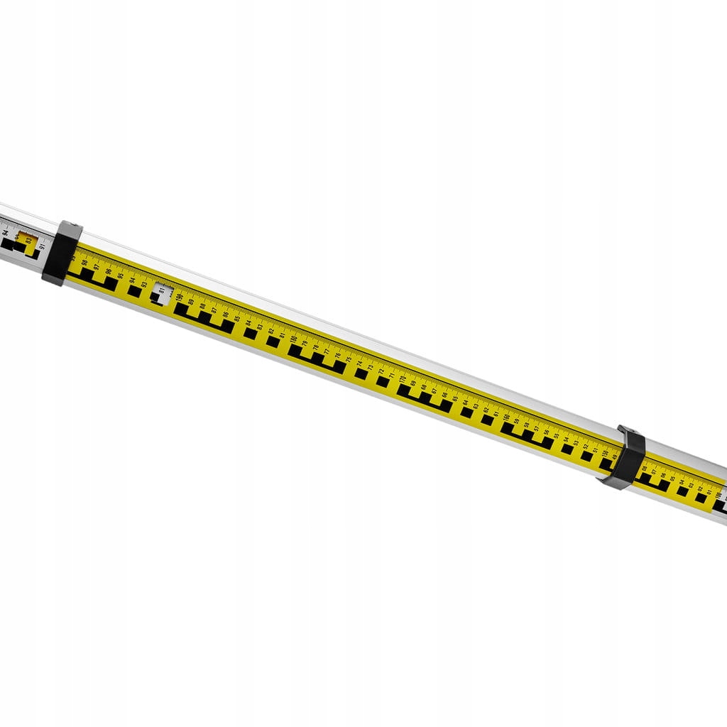 Телескопічна планка від Meec Tools для використання з оптичним нівеліром. Довжина: 5 м в розкладеному стані і 1,2 м в положенні стоячи. Латка з алюмінію.