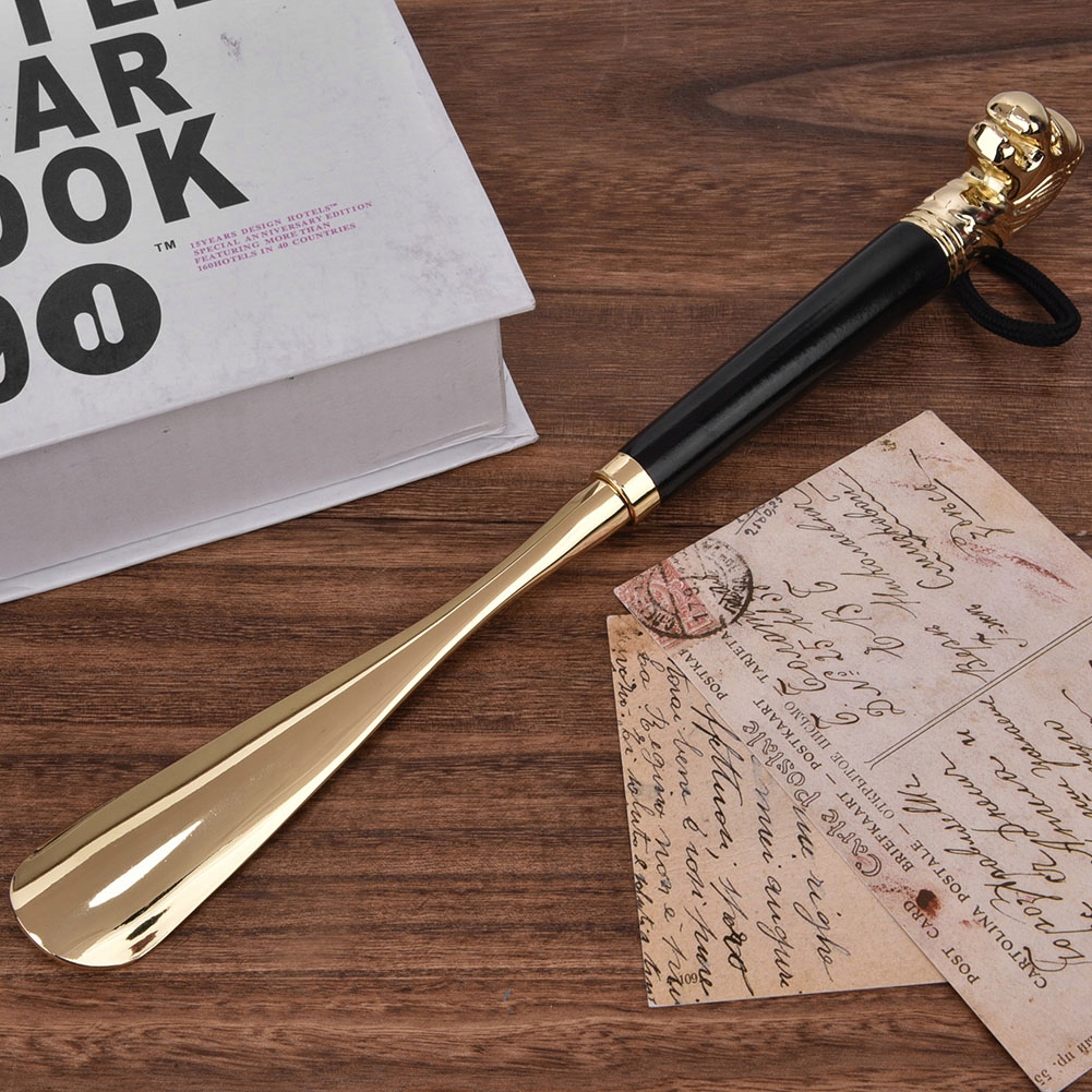 Металевий ріжок для взуття з головою лева, дерев'яний, довга ручка, підйомник для взуття, ріжок для взуття, чорний, 49 см