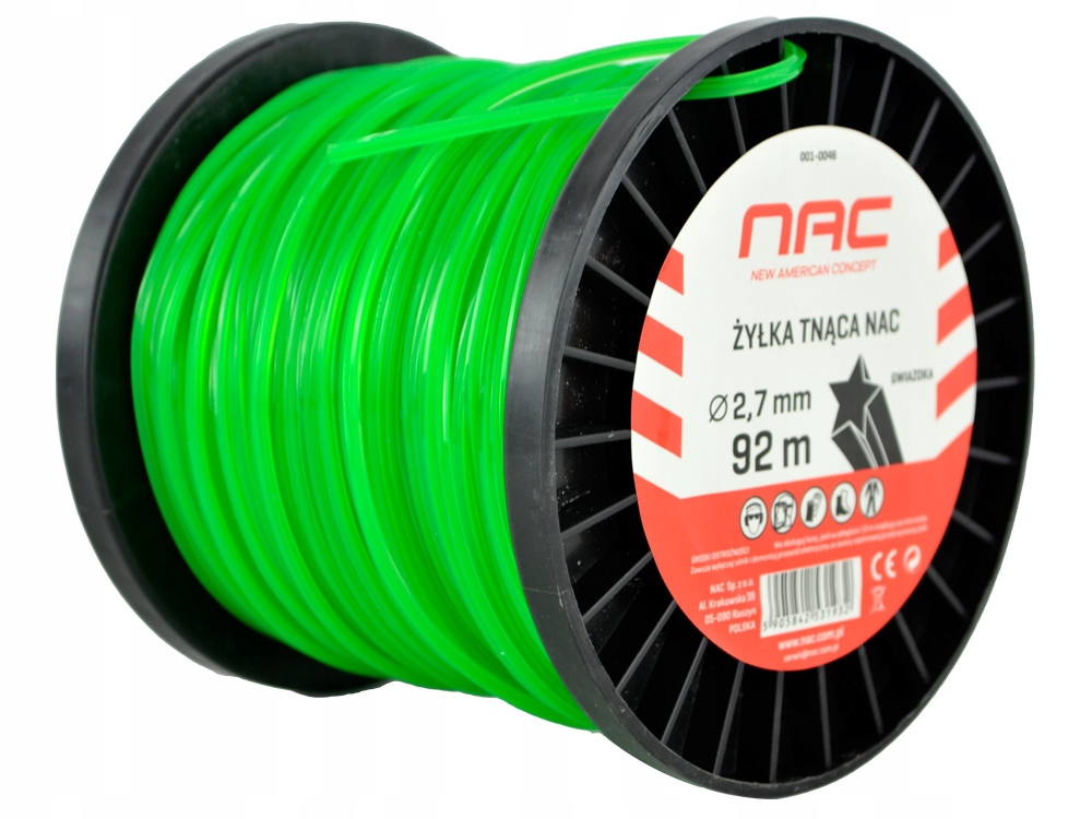 Ріжуча лінія для коси та тримерів NAC 001-0046 - зіркоподібний переріз - товщина 2,7 мм і довжина 92 метри.