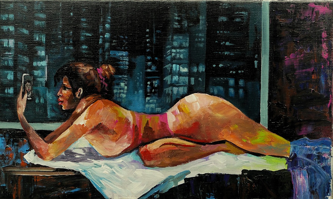 Картина олією, покрита лаком, намальована на полотні та натягнута на підрамник