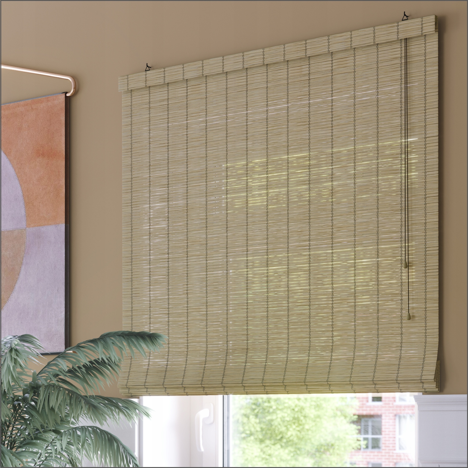 Римський бамбуковий ролик -сліпий виконує свою основну функцію - вона захищає квартиру від надмірного опалення та охороняє конфіденційність своїх мешканців. Окремі промені сонця потрапляють у кімнату через делікатні зазори між планками, що призводить до прекрасної гри.