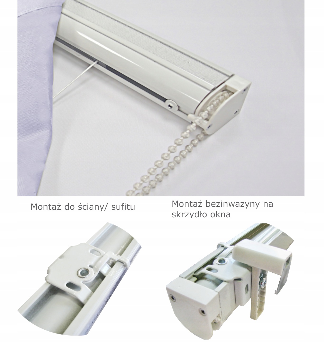 Рулонні штори можна прикріпити до стіни чи стелі, а також неінвазивно до віконної стулки (неінвазивні вішалки).