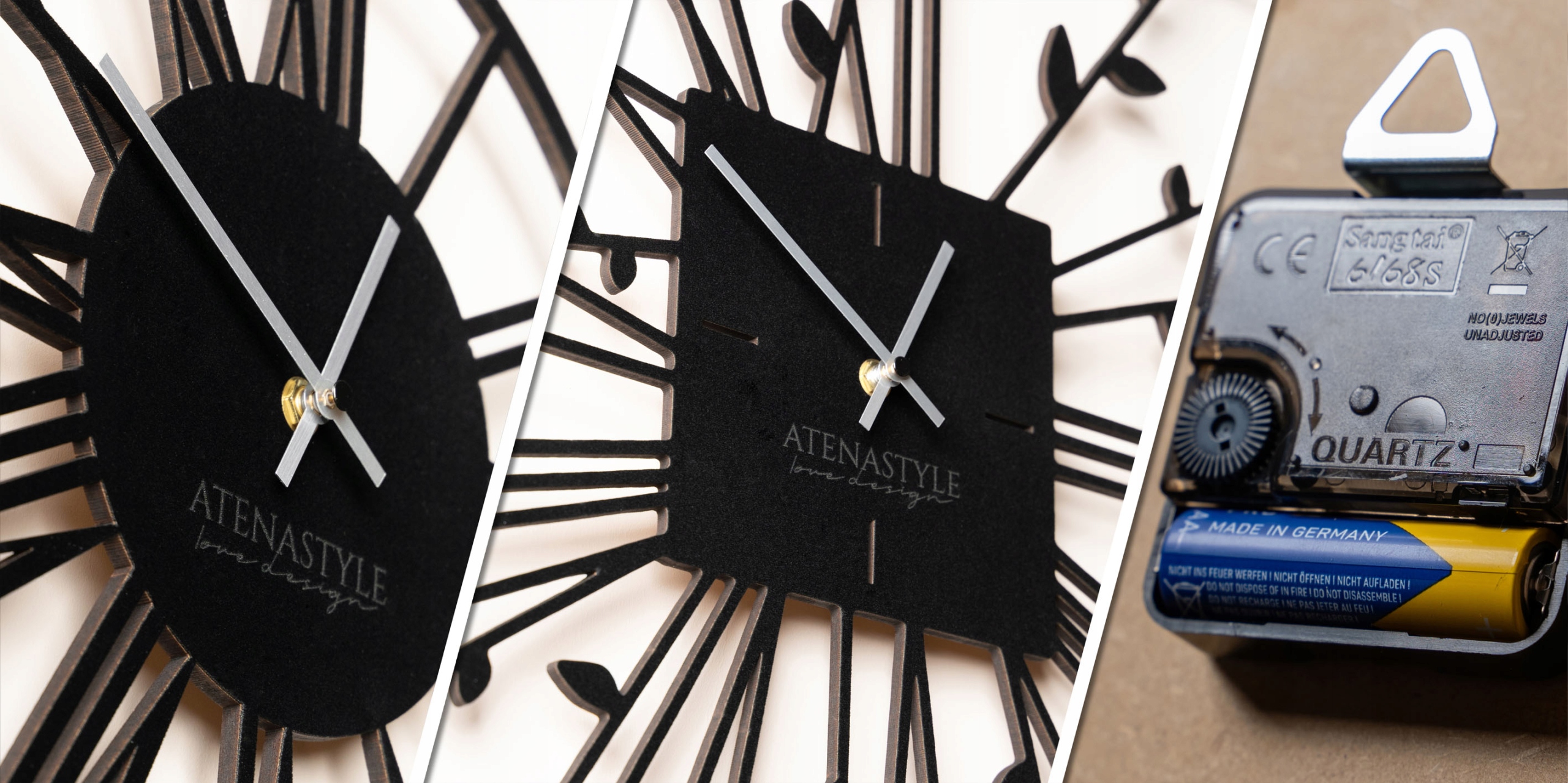 - ВИСОКА ЯКІСТЬ - годинник виготовлений з матеріалів найвищої якості. Його циферблат точно вирізаний лазером з деревного МДФ, покритого ексклюзивним чорним оксамитом, а стрілки виготовлені зі світлого алюмінію. Виготовлений з увагою до найдрібніших деталей, годинник елегантний і виглядає неповторно в будь-якій кімнаті.