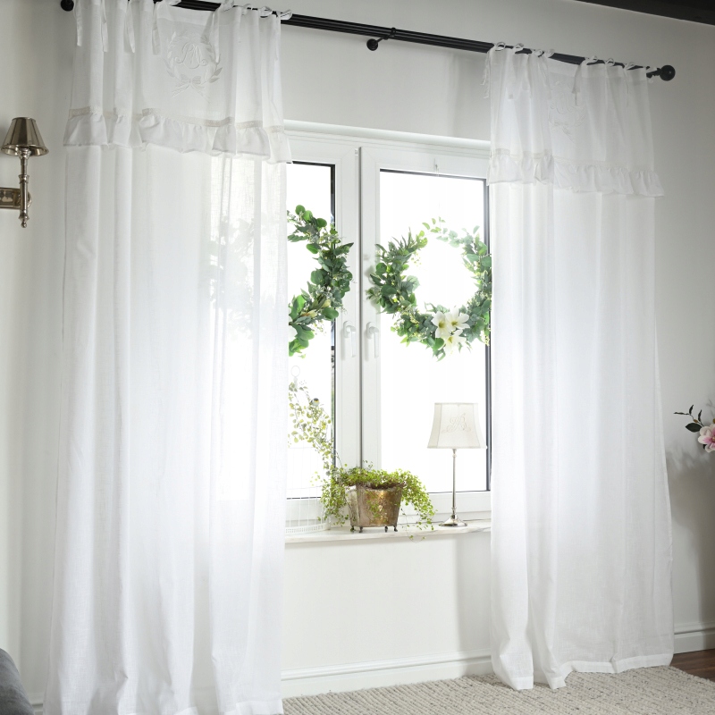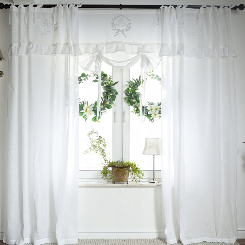 p>Вивішений крізь тунель на карнизі з ефектною вишитим монограмою.