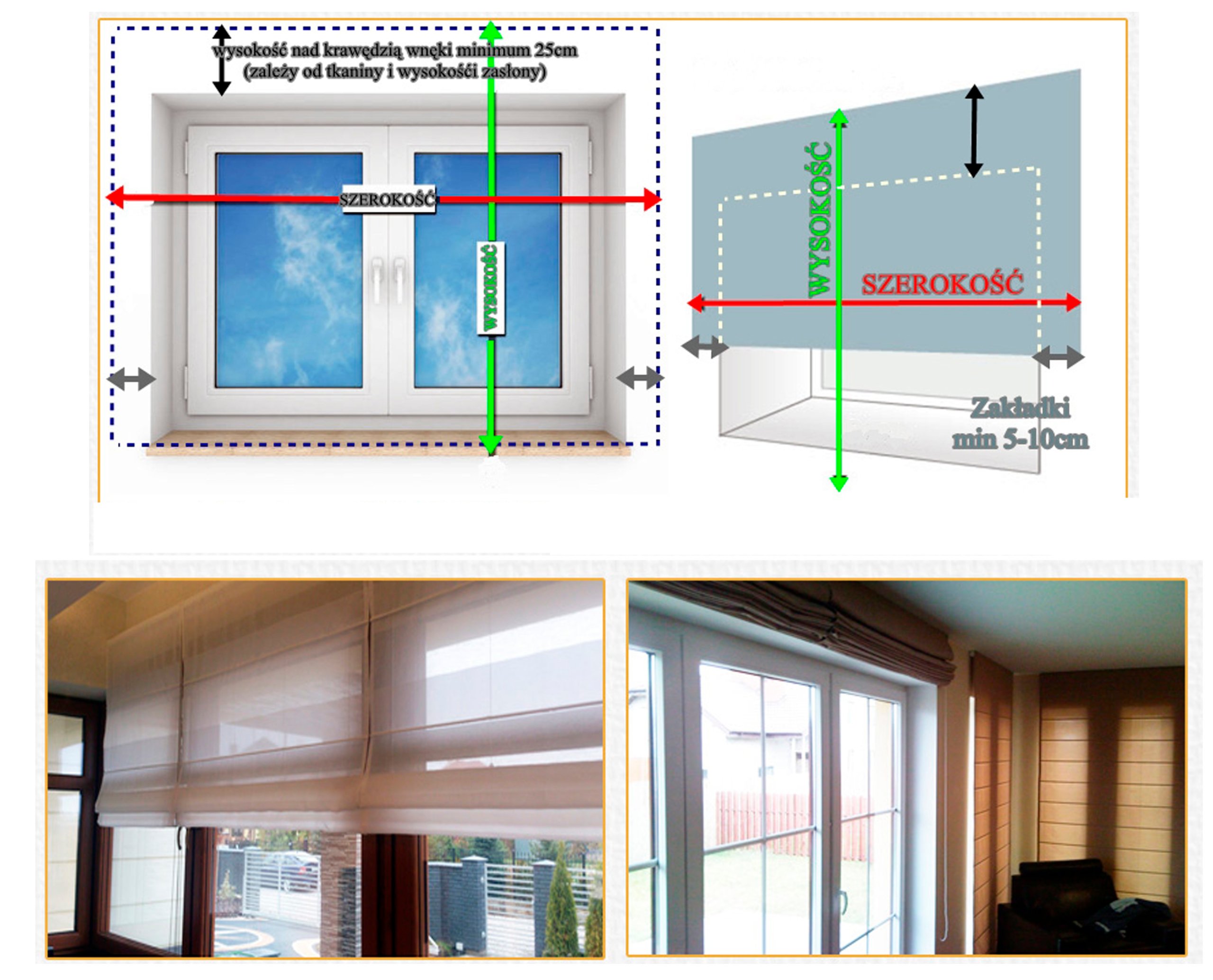 Римські штори можна повісити в нашому інтер'єрі декількома способами.Нижче описані основні та варіанти розмірів і монтажу, а також їх переваги та недоліки.