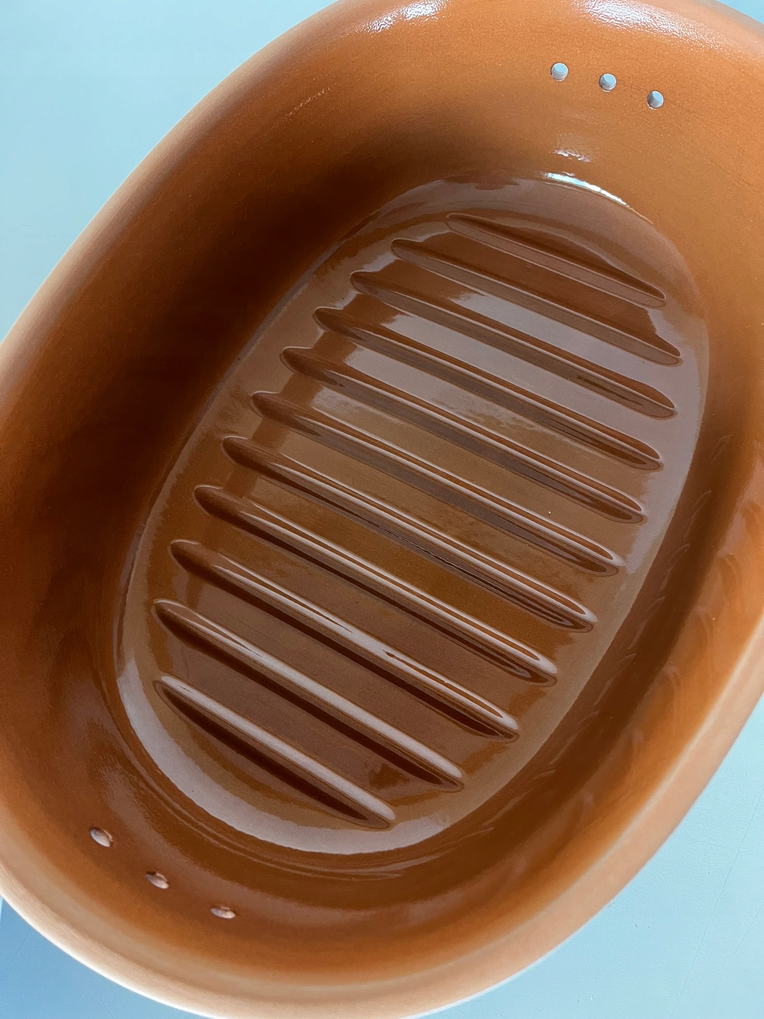 P>овальний хліб Römertopf для зберігання хліба. Дірки, розміщені в додаванні частини контейнера, забезпечують циркуляцію повітря, завдяки якому хліб тривалий час зберігає свіжість і не формується.
