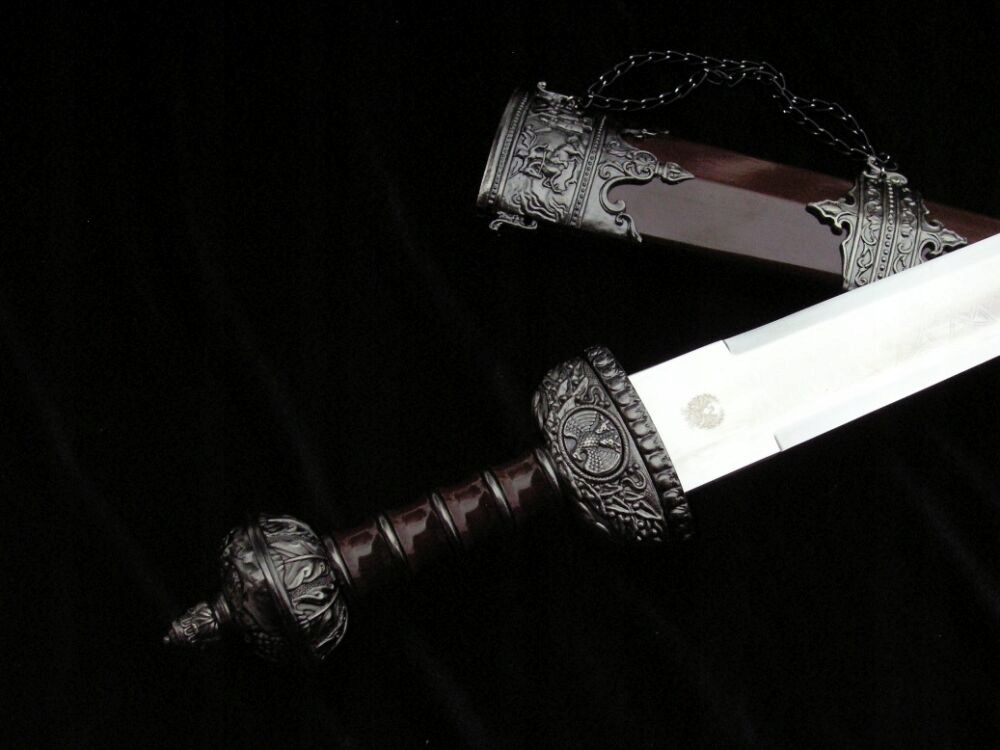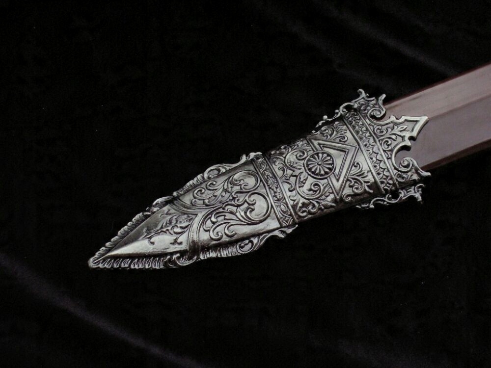 Гарда: метал, багато вигравіруваний символами, пов’язаними з Римською імперією (з одного боку імператорський орел, з іншого вовчиця, яка годує Ромула та Рема)