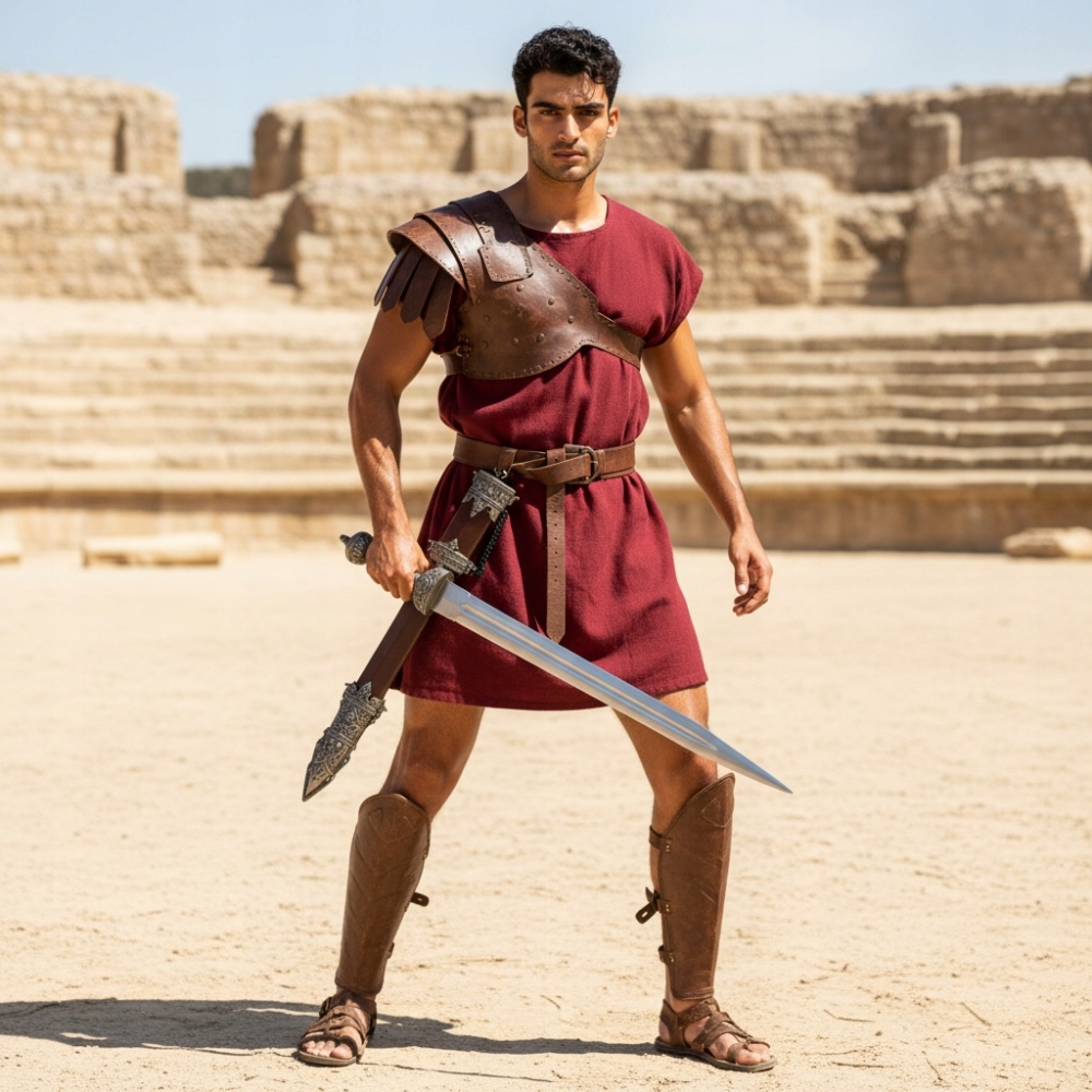 Клинок: нержавіюча сталь 440, вигравіруваний з обох сторін. Додатково на одній стороні ручки є гравіювання у вигляді орла Римської імперії в лавровому вінку з написом: S P Q R - Senatus Populusque Romanus (скорочено SPQR)? латинська формула, що означає «Сенат і римський народ».