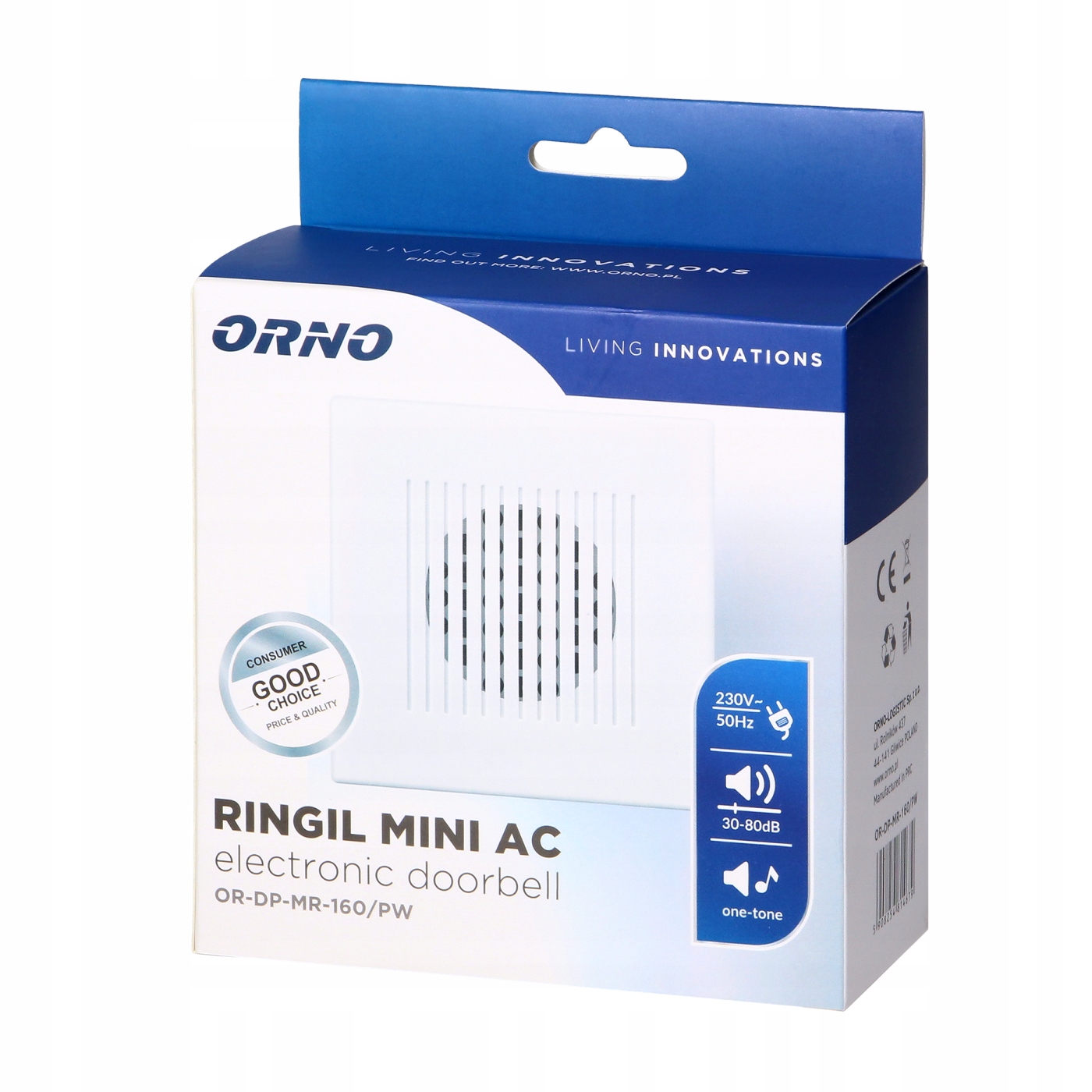 Дзвінок Ringil Mini AC 230V однотональний. білий OR-DP-MR-160/PW ORNO