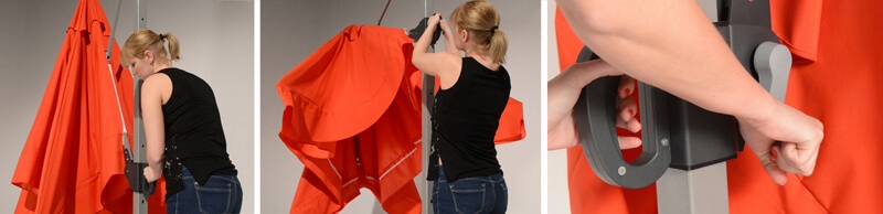 Завдяки великому діапазону схильності його також можна використовувати як екран, що ідеально підходить для високого сонячного світла та вітру. Подяг з парасолькою пристосовано для встановлення сітки комара. Відкриття дуже інтуїтивно і просте.