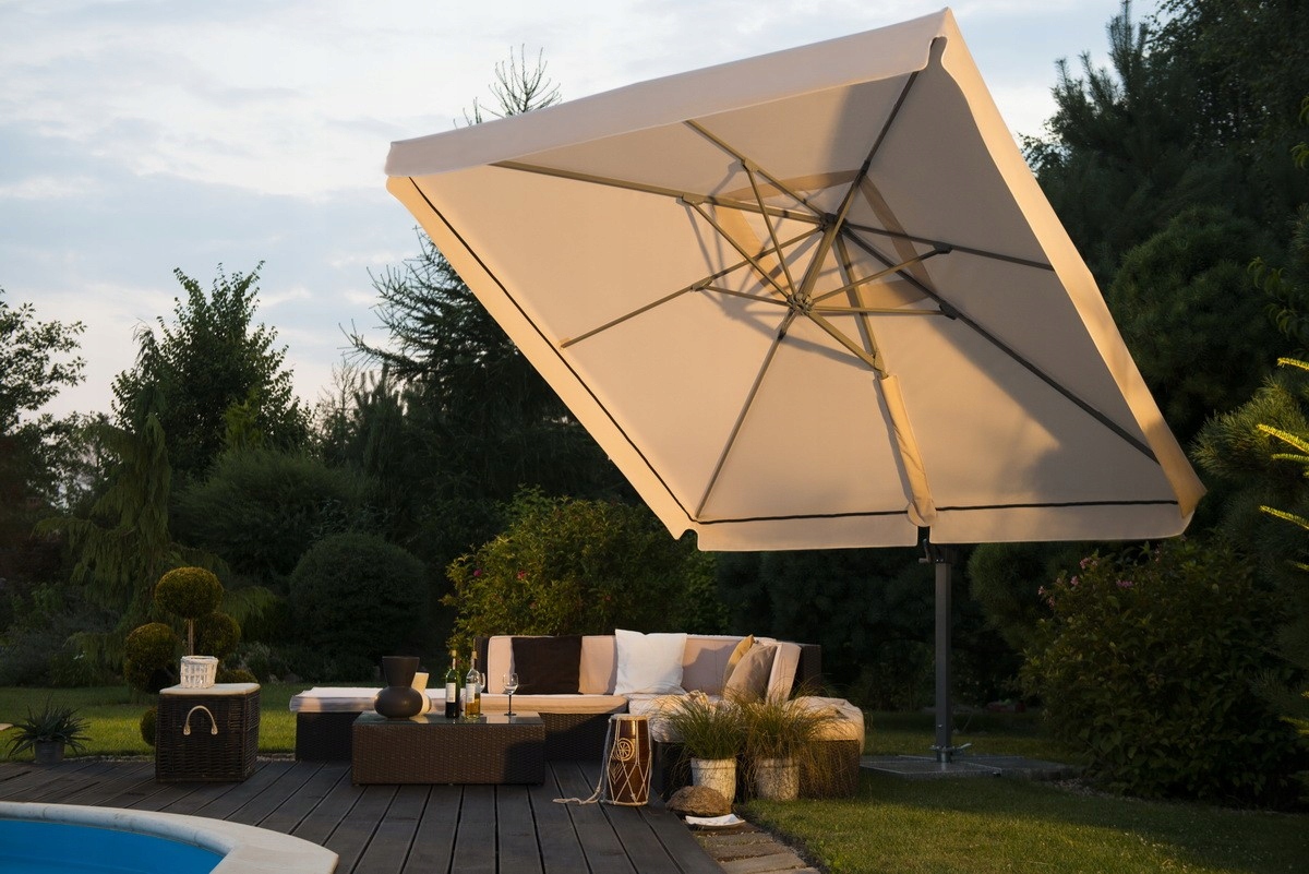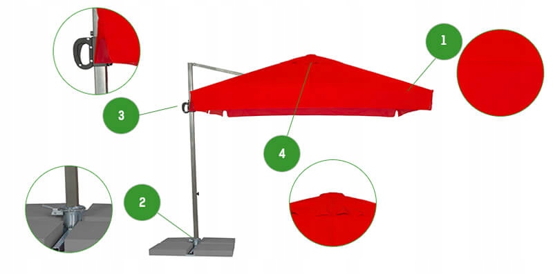 Інноваційні будівельні рішення та великий квадратний навіс гарантують вам відпочинок на найвищому рівні. У парасольці є бічна нога, завдяки якій вона отримує унікальний дизайн і створює сприятливі умови для відпочинку та меблів під ним.