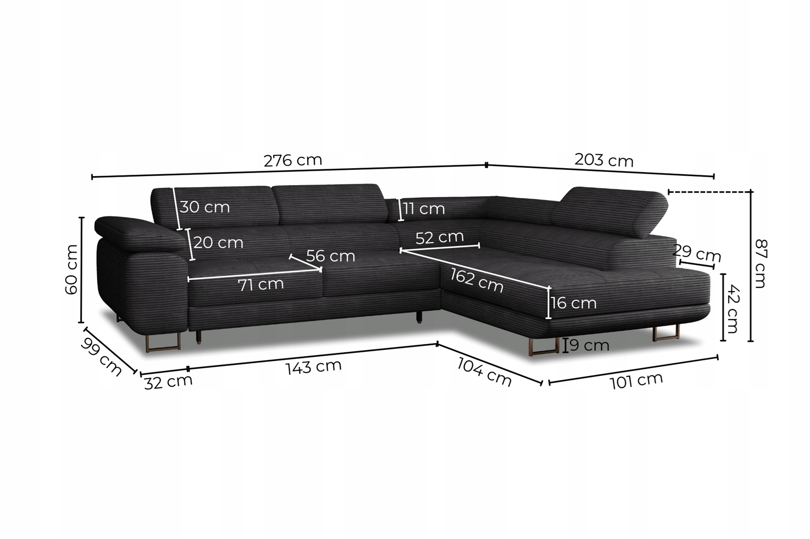 - HR піна додається лише на сидіння кутового дивана.