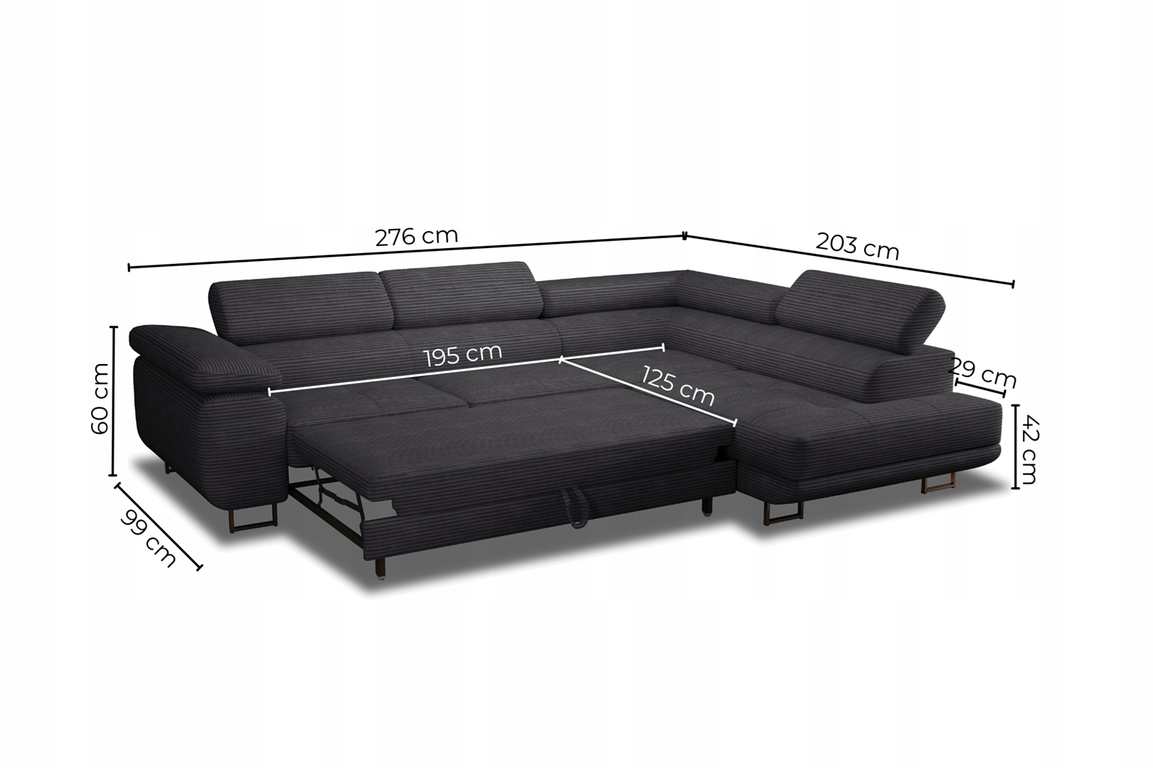 ✅ Спальна функція площею 195 х 125 см - підвищує функціональність меблів. Увага! Ця функція корисна для часового сну.