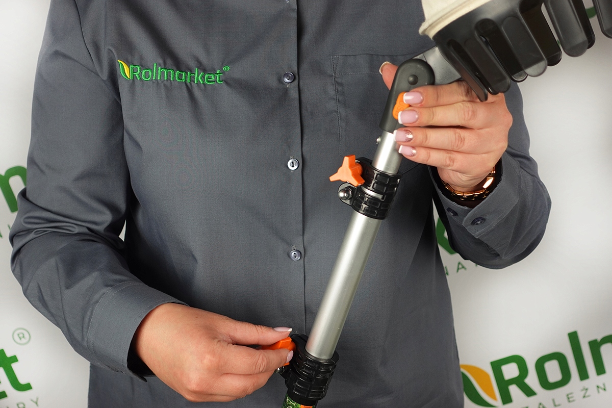 ➡️ Оснащений телескопічною ручкою з регульованою довжиною від 150 см до 375 см, завдяки якій ви можете дістатися навіть до найвищих гілок, не відриваючись від землі .