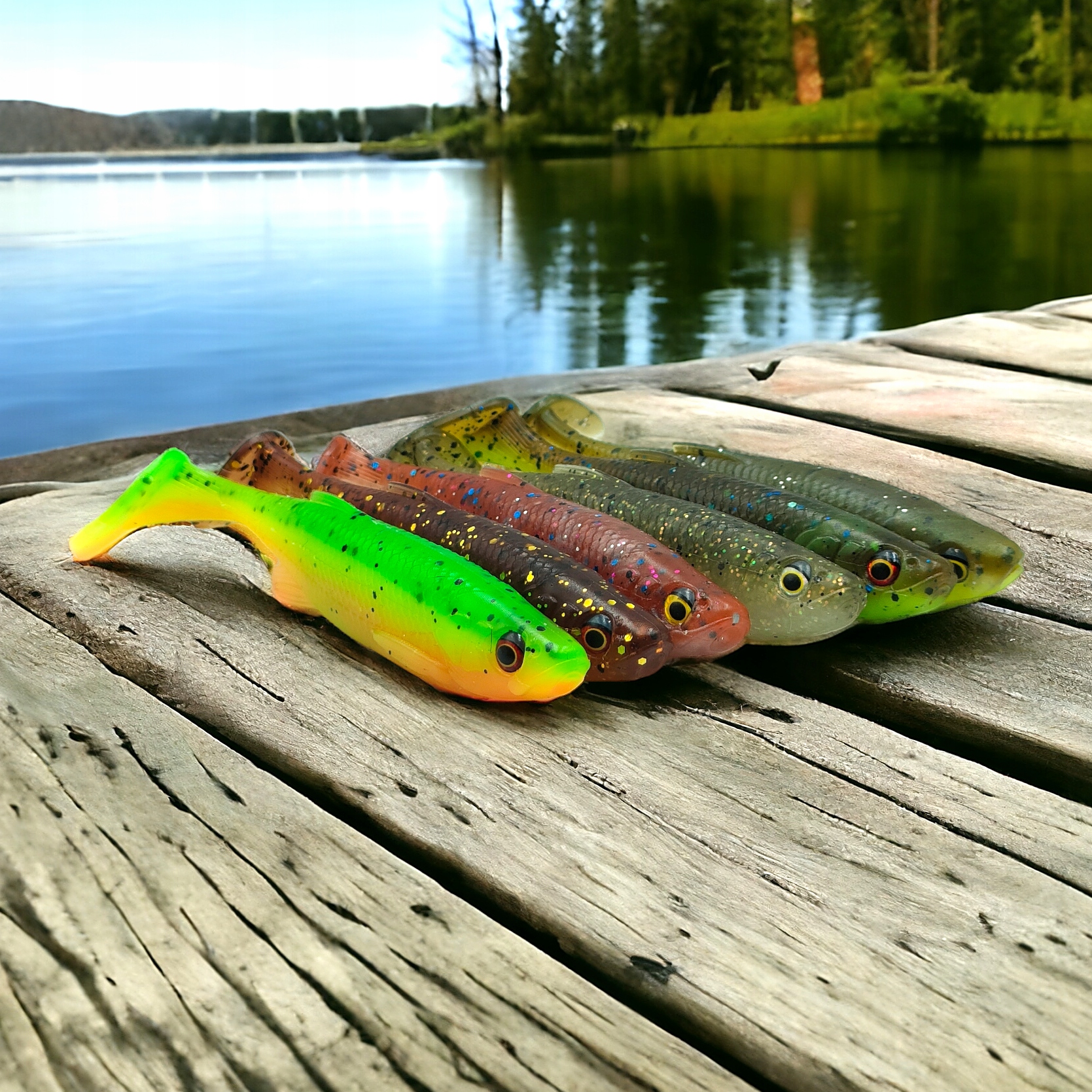 Товсте, «жирне» черево, укомплектоване великим, плоским Т-подібним копитом, озброєним легкими джиг-головками, ідеально розгойдується вбік, широко працюючи хвостом. Ця гума зовсім не боїться сильних опадів на судака.