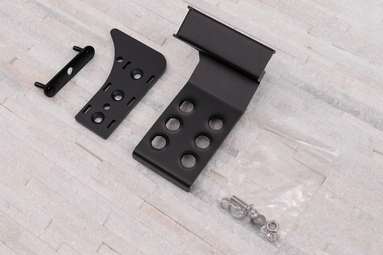 Перфорація на поверхні підйомника запобігає ковзанню черевика, а стійкість всього забезпечується кріпленням опори до землі за допомогою елементів, що входять до комплекту. Педаль кріпиться до стіни перегородки одним гвинтом без будь-якого втручання.