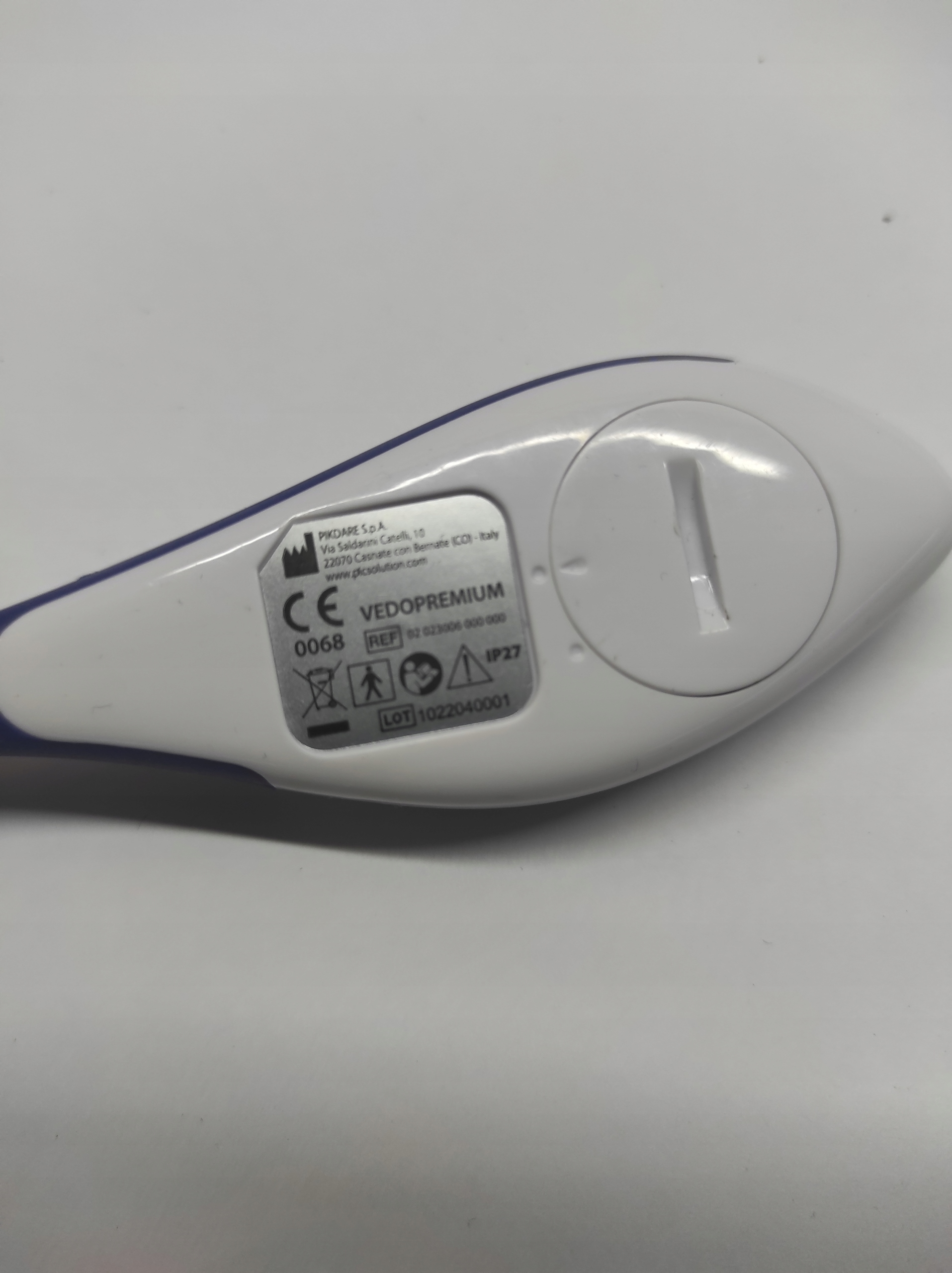 - Страх - звук і колір (вище температури 37,5 ° C Відключено червоним кольором). Пластиковий випадок. 42,0 ° C), ± 0,2 ° C (в діапазоні <35,5 ° C або> 42,0 ° C). 3V, у наборі).