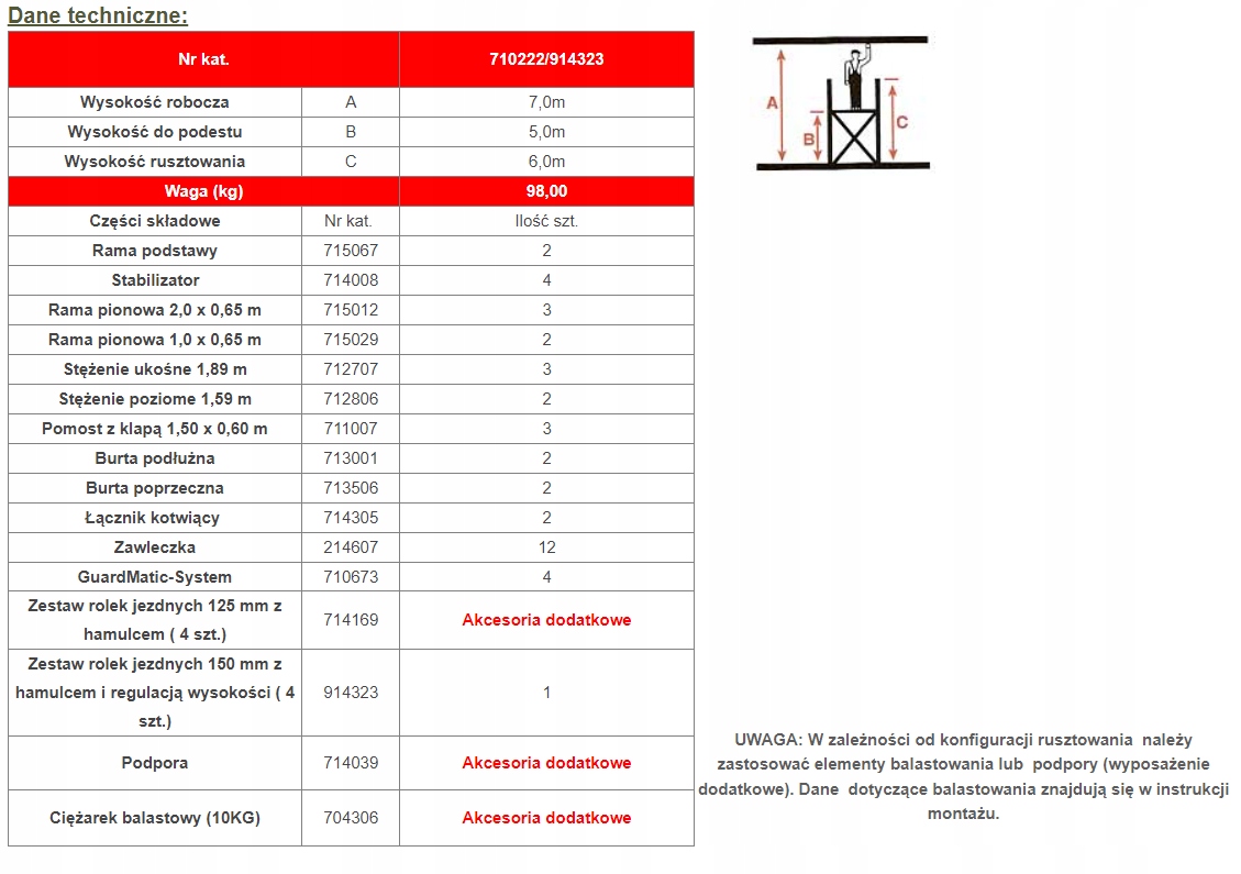 Аукціон стосується риштувань KRAUSE ClimTec з робочою висотою 7 м і колесами 150 мм.