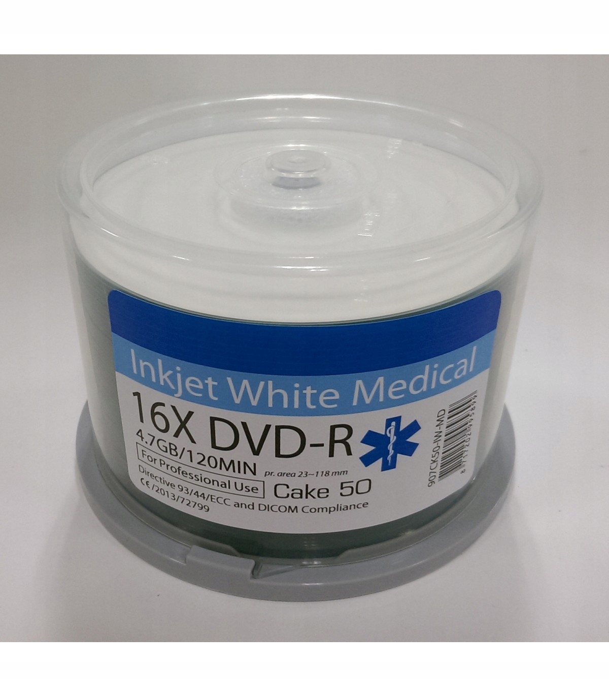 50 частин найякісніших професійних носіїв для медичного використання. Призначений для запису тестів, даних пацієнтів і всіх типів матеріалів, що використовуються в медичних установах Це єдиний диск, який відповідає стандартам продукту, схваленого для медичного використання, що підтверджено такими сертифікатами: CE, DICOM і відповідність ЄС директива 93/42/ЄЕС. Диски, сумісні з розмножувачами та медичними принтерами. Швидкосихаюча точна поверхня для струменевого друку. Сумісний, зокрема, з принтерами Primera та Rimage. Забезпечує довготривалу безпеку збережених даних.