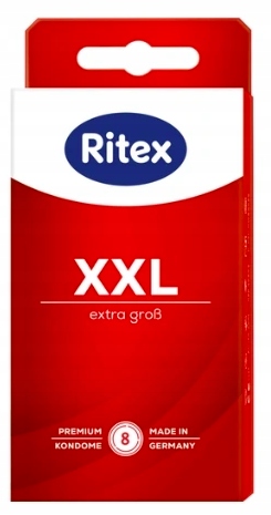 Дуже великий? Більше комфорту! 8 презервативів Ritex XXL (ширина: 55 мм, циліндрична форма), виготовлена з природного латексу, дуже великі та дуже гнучкі. Завдяки додатковому зволожуючому шару вони забезпечують оптимальну безпеку. P>