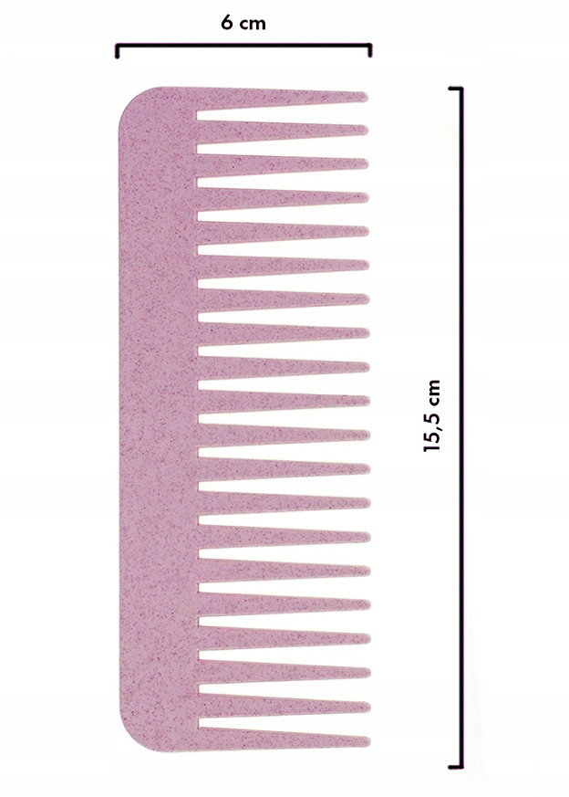 - Широка відстань між зубцями дозволяє розчісувати навіть густе та кучеряве волосся, не смикаючи та не розриваючи. Кожен зубець гребінця закруглений, щоб не пошкодити структуру волосся.