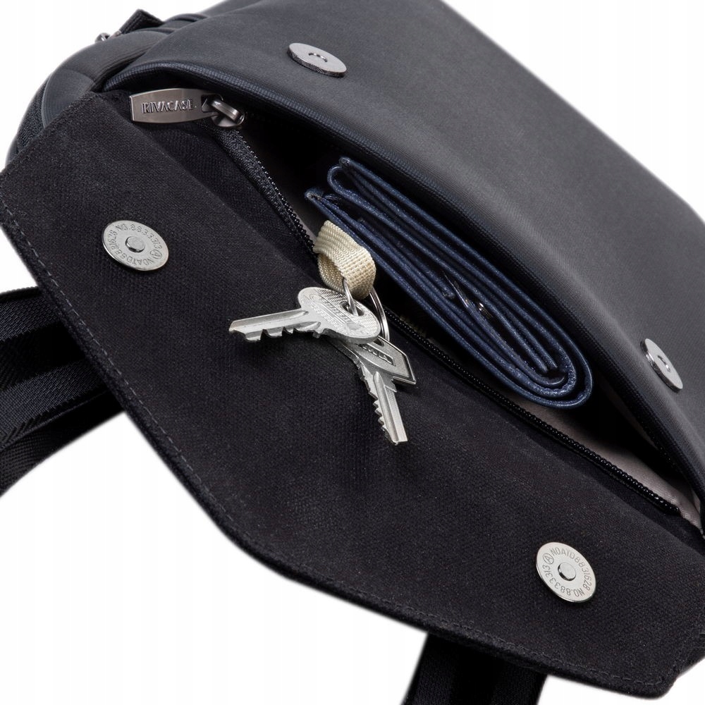 - Передня кишеня на блискавці для смартфона, візитних карток, аксесуарів і знімного ремінця для ключів