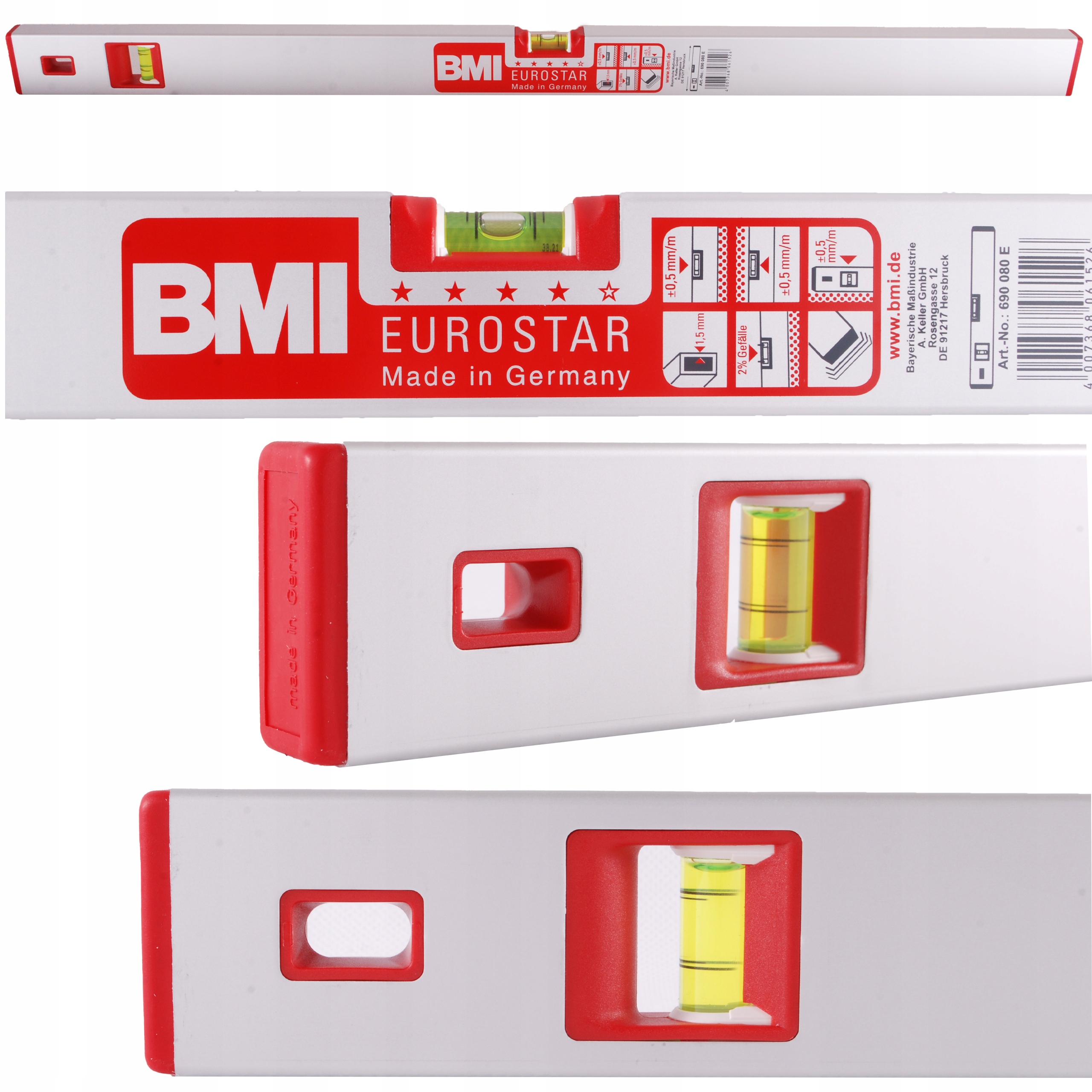 Алюмінієвий рівень EUROSTAR 80 см (BMI)