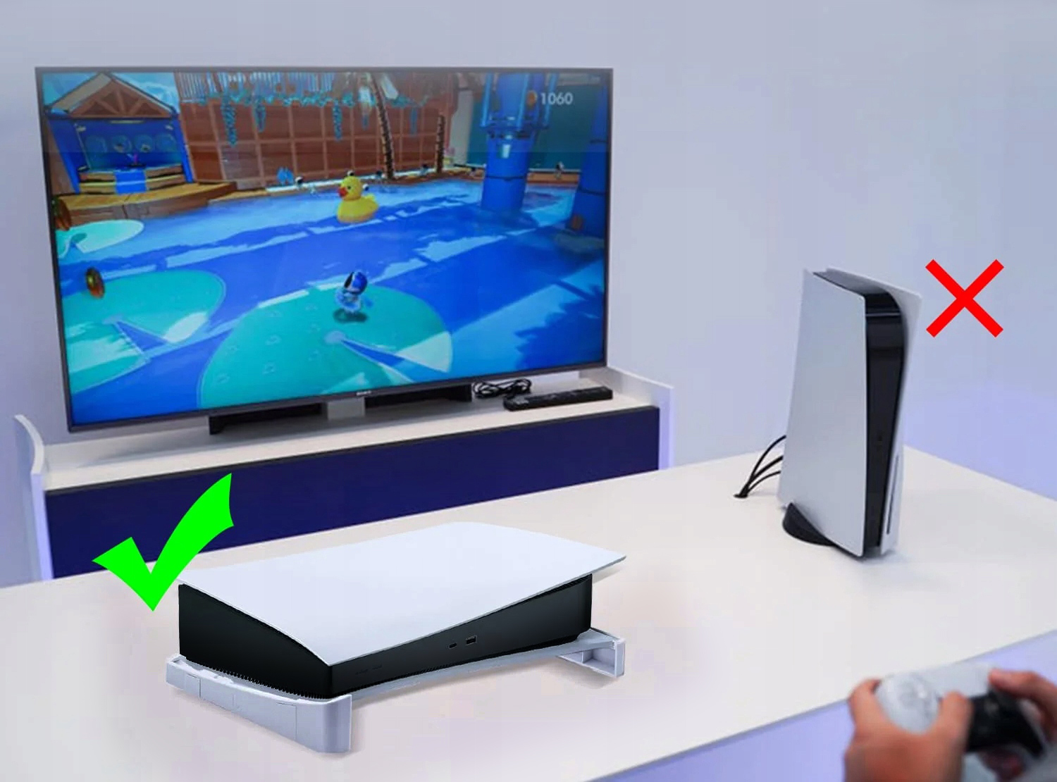 ✅ Захист від перегріву: використання підставки може допомогти запобігти консолі PS5, що запобігає перегріву. Якщо консоль працює тривалий час або інтенсивно використовується, основа може допомогти підтримувати оптимальні температури та запобігти перегріву, що може призвести до відмови обладнання.
