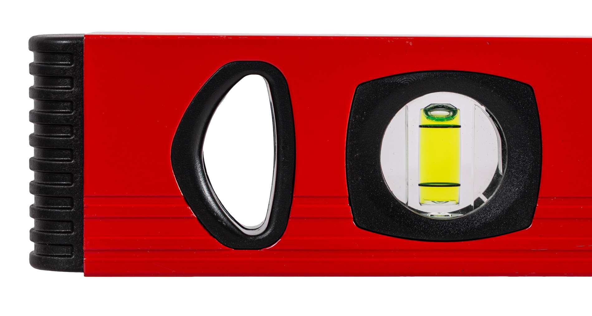 Високоякісний алюмінієвий рівень. Високоякісний алюмінієвий корпус з порошковим покриттям і фрезерованим вимірювальним краєм. Три флакони з довічною гарантією. Тримач для підвішування рівня. Точність: 0,5 мм. 1 м.