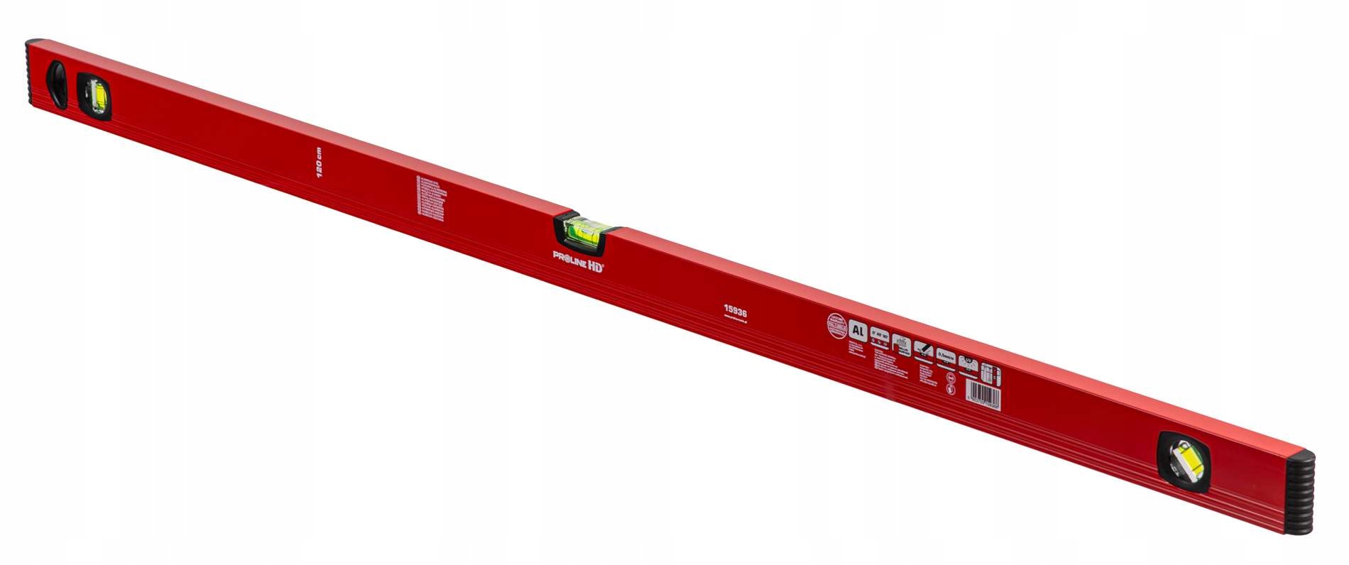 Рівень PROLINE HD алюмінієвий, фрезерований край, 3 флакони, 120 см