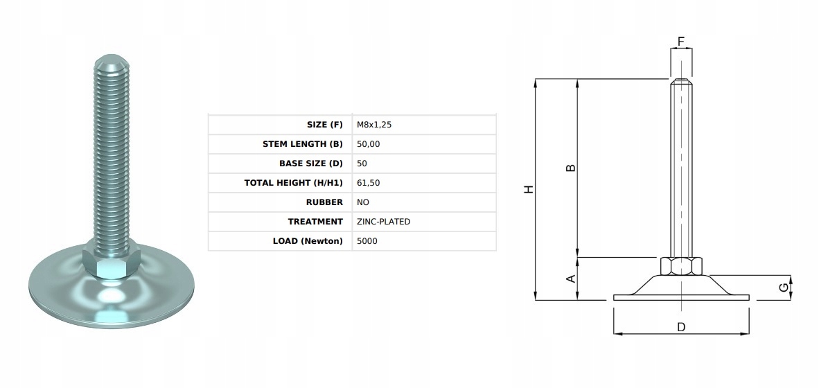 Рівень стопи Ø50 M8x50 оцинковано 550 кг